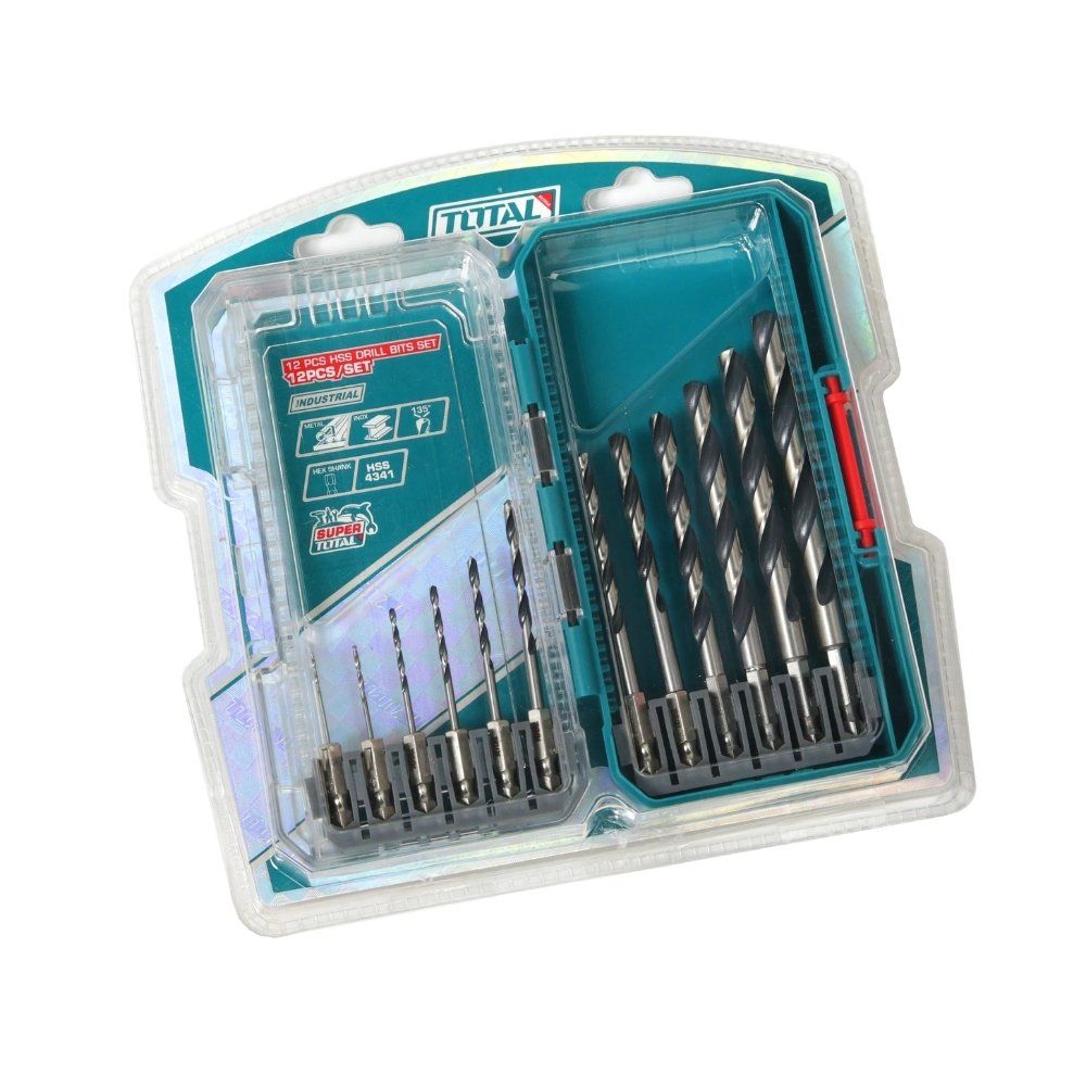 Bộ 12 mũi khoan HSS Total TACSDL11206 là bộ dụng cụ cơ bản và thiết yếu cho việc khoan kim loại và các vật liệu cứng khác. Tất cả các mũi khoan đều được làm từ thép tốc độ cao HSS 4341 chất lượng cao, đảm bảo độ cứng và khả năng chịu nhiệt tốt khi khoan kim loại. Bộ sản phẩm này bao gồm 12 kích thước thông dụng nhất, đáp ứng hầu hết các nhu cầu khoan lỗ trên thép, đồng, nhôm và nhựa. Thiết kế chuôi lục giác giúp việc thay đổi mũi khoan trở nên cực kỳ nhanh chóng và chắc chắn.