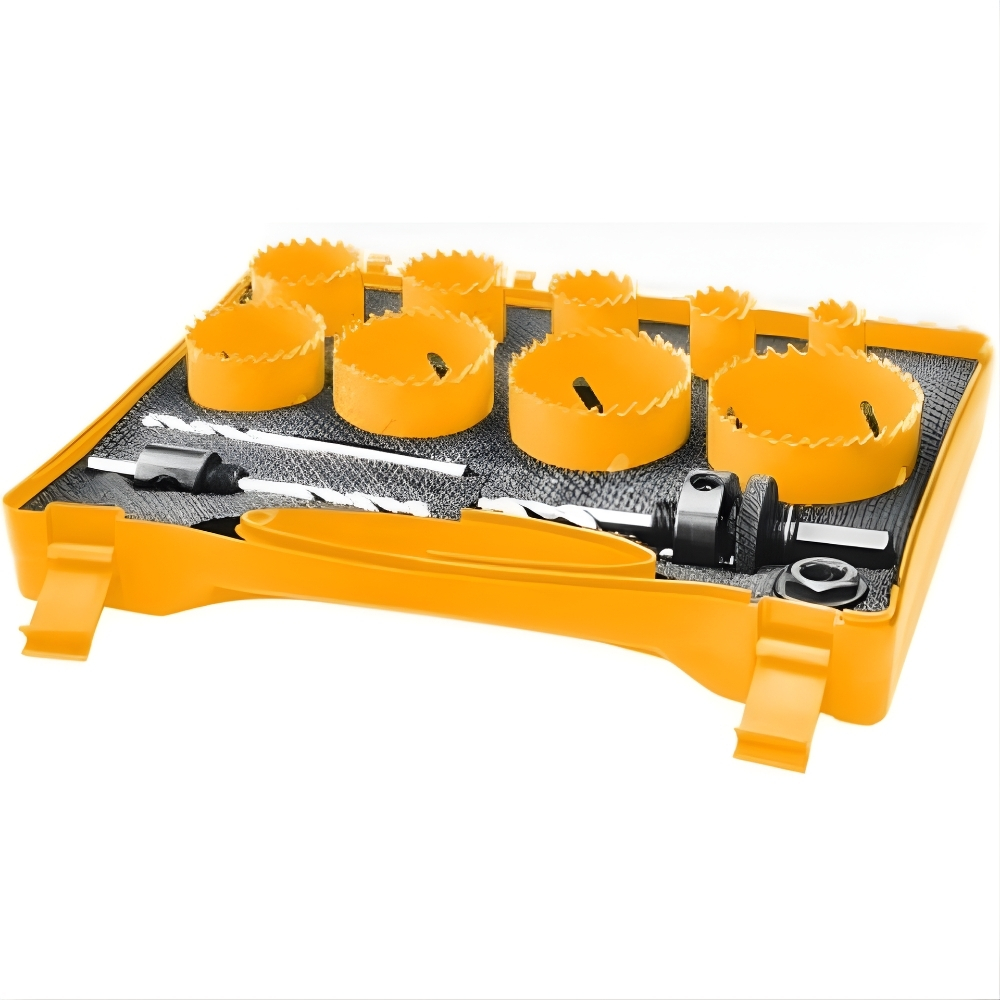 - Hộp nhựa bảo quản bền bỉ: Giữ các mũi khoét ngăn nắp, chống thất lạc và bảo vệ đầu răng cưa khỏi hư hỏng khi va chạm.