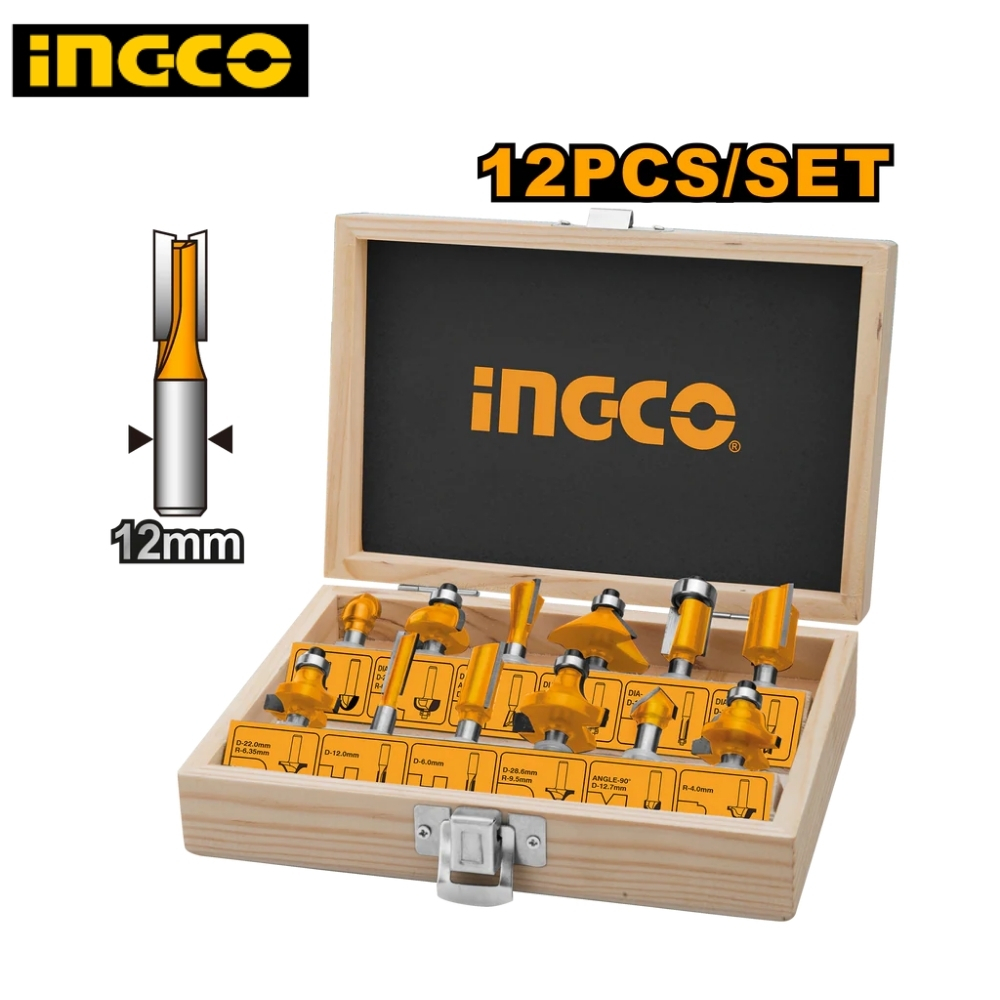 Trong bộ 12 mũi phay gỗ 12mm Ingco AKRT1221, người dùng sẽ tìm thấy đầy đủ các mẫu mũi phổ thông như mũi thẳng 6-12-16mm, mũi Dovetail tạo mộng ghép và các mũi tạo chỉ Roman ogee nghệ thuật. Mỗi mũi phay đều có lưỡi cắt hợp kim sắc bén, chịu được nhiệt độ cao và áp lực lớn từ máy phay bàn hoặc máy phay cầm tay công suất lớn. Sản phẩm được đựng trong hộp bảo quản chuyên nghiệp, đảm bảo các đầu mũi luôn ở trạng thái tốt nhất cho mỗi lần sử dụng.