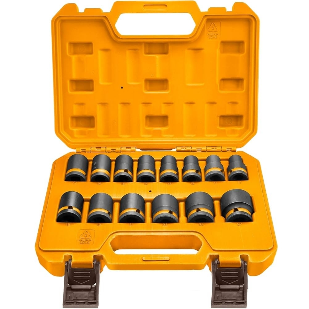 Bộ 14 đầu tuýp đóng 1/2″ Ingco HKISSD12141 là phụ kiện không thể thiếu cho các anh em thợ chuyên sử dụng máy siết bu lông tác động mạnh. Với dải kích thước từ 10mm đến 27mm, bộ sản phẩm này đáp ứng hầu hết các nhu cầu vặn mở bu lông phổ biến trên xe máy, ô tô và máy móc công nghiệp. Sản phẩm được chế tạo để chịu được lực va đập lớn mà không gây biến dạng hay làm hỏng đầu bu lông trong quá trình thi công thực tế.