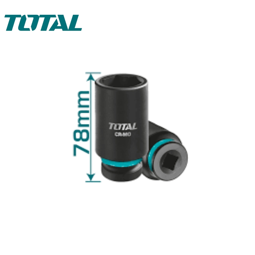Bộ 14 đầu tuýp Deep impact 1/2″ Total THKISD12143L là bộ dụng cụ tuýp tác động sâu (Deep Impact) lớn nhất, cung cấp dải kích thước toàn diện (10-27mm) với chiều dài 78mm. Bộ sản phẩm này là giải pháp tối ưu cho việc tháo lắp bu lông dài hoặc nằm sâu trong hốc ở các công việc sửa chữa ô tô và máy móc tải nặng. Vật liệu Cr-Mo được ép nguội và xử lý nhiệt mang lại khả năng chống chịu lực tác động mạnh mẽ nhất.