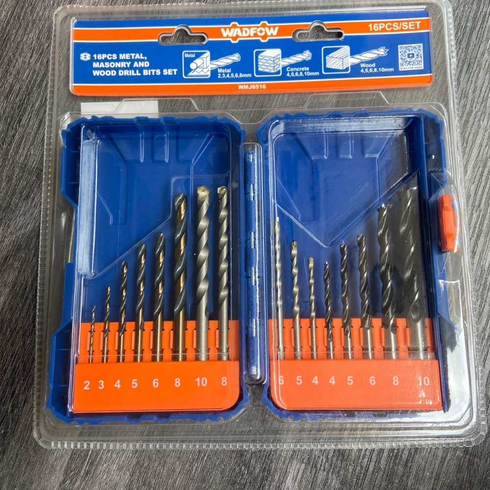 Bộ 16 mũi khoan Wadfow WMJ6516 là bộ đa năng hoàn chỉnh, bao gồm mũi khoan cho kim loại, gạch và gỗ. Sự phong phú về kích thước và chủng loại là điểm mạnh lớn nhất của bộ này.