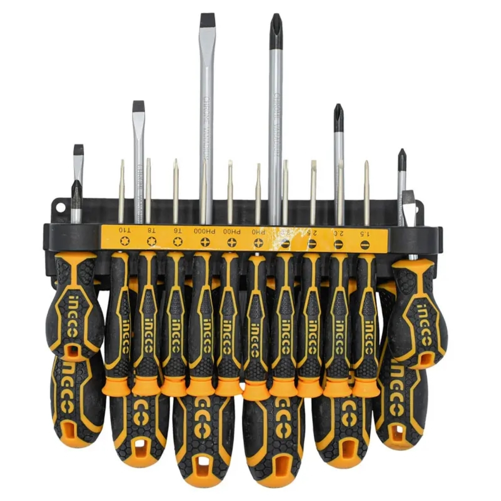 Bộ 18 tua vít Ingco HKSD1828 là bộ sưu tập dụng cụ đồ sộ, mang lại khả năng sửa chữa toàn diện cho mọi thiết bị từ thô đến tinh. Sản phẩm được chia thành hai nhóm riêng biệt: 8 tua vít lớn chuyên dụng cho cơ khí, điện nước và 10 tua vít chính xác nhỏ chuyên dùng cho vi mạch điện tử. Sự đa dạng này giúp người dùng không cần phải trang bị thêm bất kỳ bộ tua vít lẻ nào khác mà vẫn đủ sức xử lý mọi loại đầu ốc từ iPhone, laptop cho đến xe máy và tủ điện.