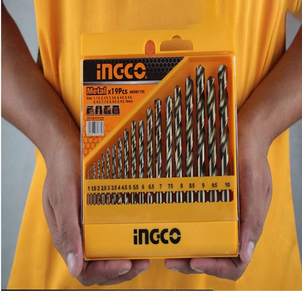 Bộ 19 mũi khoan kim loại HSS Ingco AKDB1195 là bộ dụng cụ khoan chuyên sâu với dải kích thước chi tiết nhất, bao gồm 19 mũi từ 1mm đến 10mm với các bước nhảy 0.5mm. Được chế tạo từ thép gió (HSS) chất lượng cao, bộ mũi khoan này sở hữu độ cứng vượt trội và khả năng duy trì độ bén trong suốt quá trình khoan trên các loại thép hợp kim, sắt và nhôm. Mỗi mũi khoan đều được gia công tỉ mỉ để đạt độ đồng tâm cao nhất, giúp thợ cơ khí tạo ra những lỗ khoan chuẩn xác đến từng milimet.