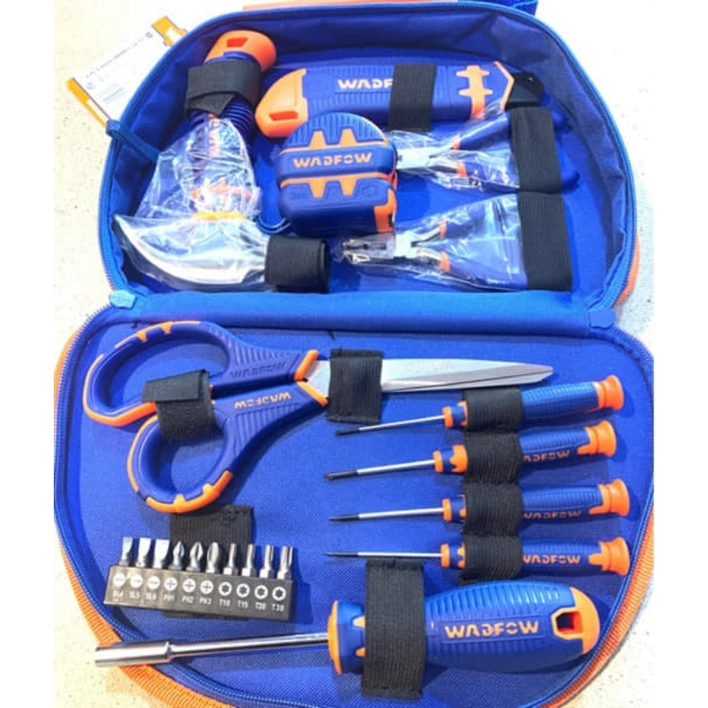 Bộ 22 món dụng cụ cầm tay tiện dụng Wadfow WHSAM22 là một tập hợp các công cụ thiết yếu, kết hợp giữa dụng cụ lớn và dụng cụ nhỏ chính xác. Các chi tiết nổi bật trong bộ sản phẩm này bao gồm: