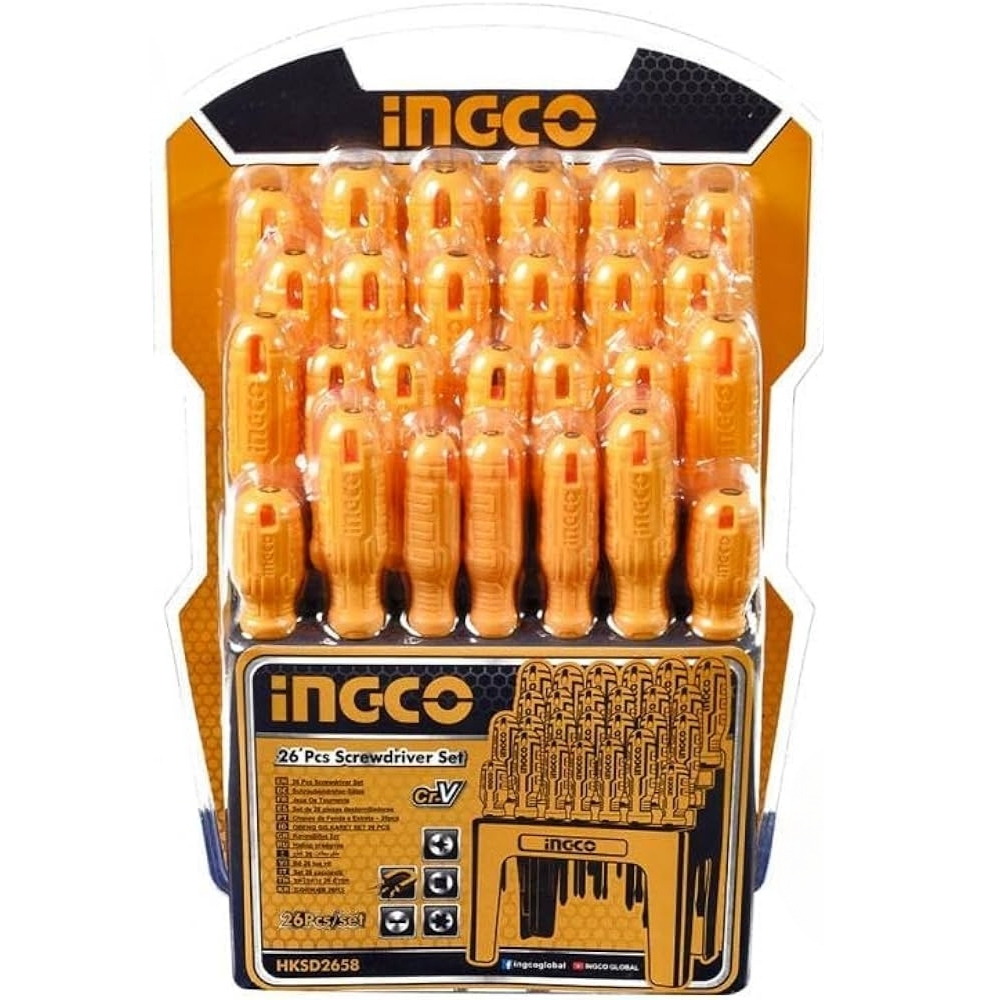 Nhóm tua vít trong Ingco HKSD2658 bao phủ mọi kích cỡ từ siêu nhỏ (PH00) cho điện tử đến siêu lớn (PH3, SL8) cho cơ khí nặng. Đặc biệt, sản phẩm đi kèm một khung nhựa lưu trữ chuyên nghiệp có thể treo tường, giúp không gian làm việc của bạn luôn ngăn nắp và khoa học. Đầu mũi vít được gia công chính xác tuyệt đối và tích hợp từ tính mạnh, giúp hút chặt ốc vít ngay cả ở những vị trí khó thao tác nhất.