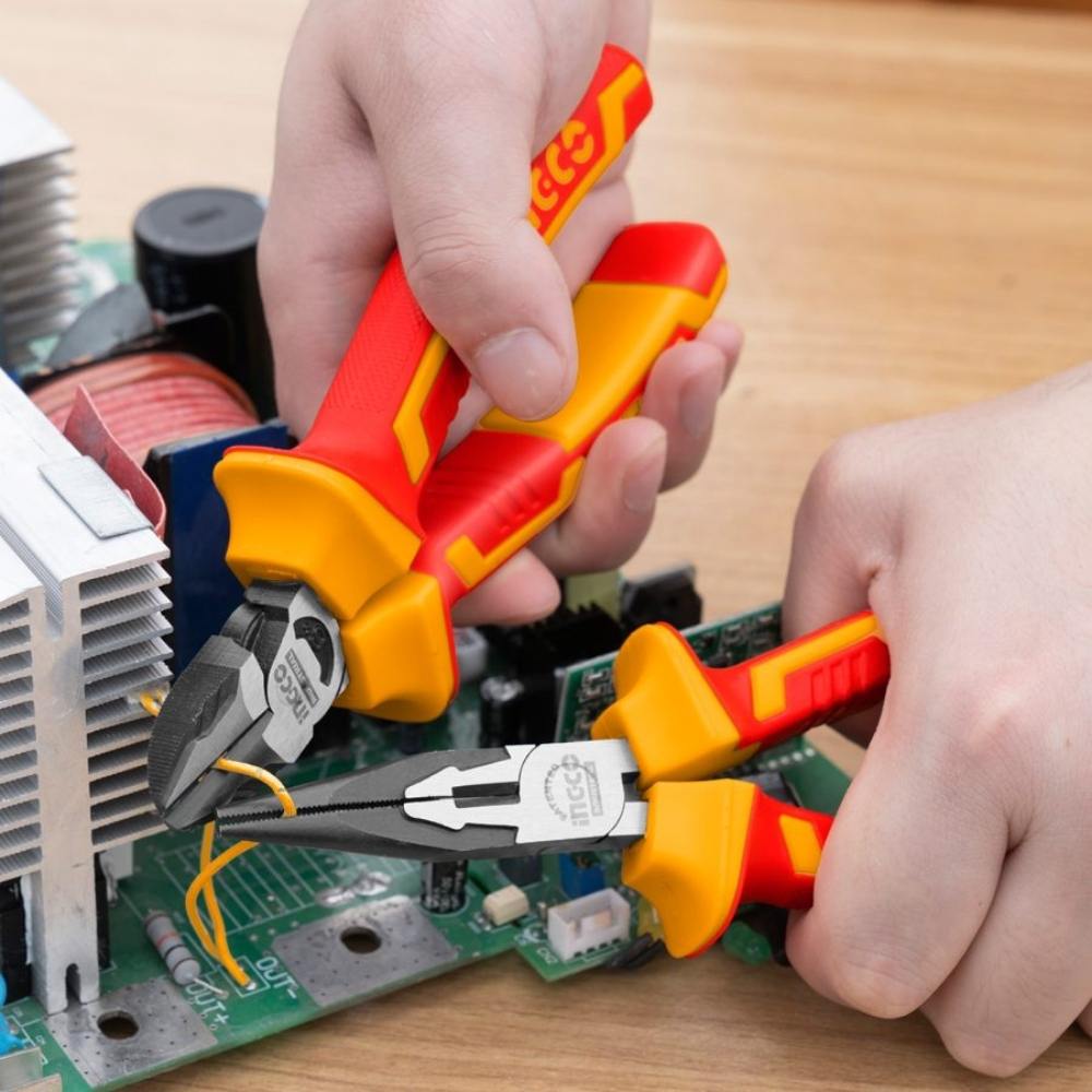 Sự tinh tế của bộ 3 kềm răng, cắt, mũi nhọn cách điện Ingco HIKPS28318 nằm ở thiết kế tay cầm hai màu dày dặn, được đúc từ nhựa cách điện cao cấp có độ bám cao và chống trượt tay. Kềm cắt cộng lực trong bộ hỗ trợ cắt dây cáp điện dày một cách nhẹ nhàng nhờ cấu trúc đòn bẩy tối ưu, giúp giảm bớt gánh nặng cho bàn tay khi làm việc liên tục. Các đầu mũi kềm được gia công chính xác, không có khe hở, đảm bảo bám chặt vào dây điện mà không gây hỏng lớp vỏ cách điện của dây dẫn. Đây là sự lựa chọn hàng đầu cho các nhà thầu điện lực và kỹ thuật viên bảo trì hệ thống điện, đáp ứng mọi tiêu chuẩn an toàn khắt khe nhất hiện nay.