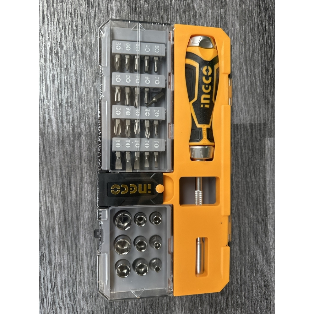 Bộ 33 tua vít đa năng Ingco HKSDB0338 là hệ thống dụng cụ cầm tay “”7 trong 1″” mang lại sự tiện lợi tối đa cho người thợ bảo trì chuyên nghiệp. Điểm nhấn của bộ sản phẩm là tay cầm Ratchet công nghiệp siêu bền, hỗ trợ cơ chế bánh cóc giúp bạn vặn vít liên tục với tốc độ cao mà không gây mỏi cổ tay. Với 20 đầu vít ngắn cùng 9 đầu tuýp (socket) 1/4 inch từ 4mm đến 12mm, bộ sản phẩm này có khả năng xử lý hầu hết các loại bu lông và ốc vít trên đồ điện máy gia dụng.