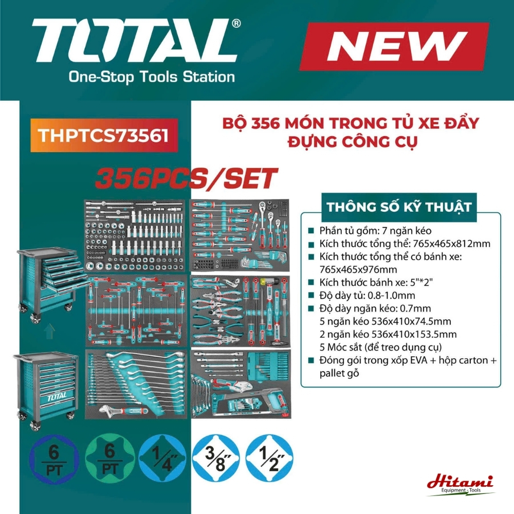 - Đầu tuýp lục giác: 18 đầu (6 mm đến 24 mm).