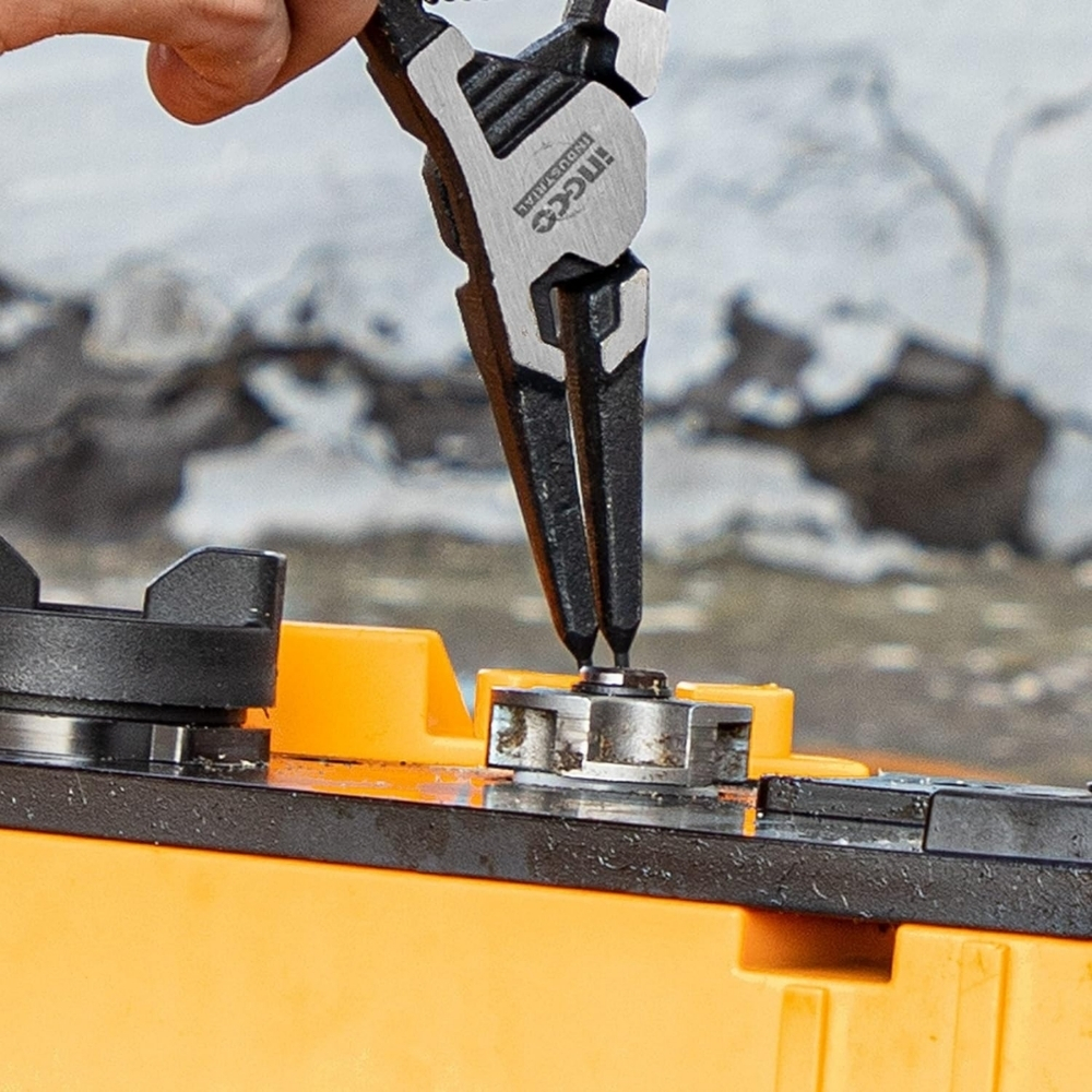 Bộ 4 kìm mở phe vòng 7″/180mm Ingco HCCPS26180 là dụng cụ chuyên sâu dùng để tháo và lắp các loại vòng phe (circlips) trong trục và lỗ máy móc. Với kích thước 7 inch (180mm), bộ sản phẩm này mang lại cánh tay đòn đủ lớn để xử lý các loại phe có lực bung mạnh trên xe tải, ô tô và máy móc công nghiệp nặng. Các đầu mũi kìm được làm từ thép Cr-V tôi luyện kỹ lưỡng, đảm bảo không bị gãy hay biến dạng đầu kim khi phải chịu áp lực nén cao từ các vòng thép. Đây là bộ trang bị không thể thiếu cho các kỹ thuật viên sửa chữa động cơ và hộp số, giúp công việc tháo lắp phe diễn ra an toàn và nhanh gọn.