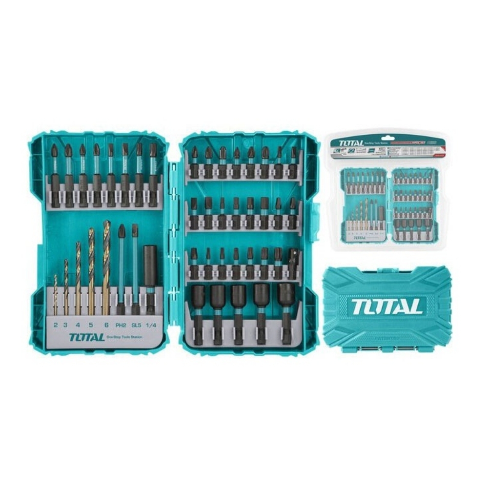 Bộ 45 mũi siết vít Total TACSDL24502 là bộ dụng cụ tổng hợp đa năng, kết hợp giữa các mũi bắt vít, mũi khoan kim loại HSS và đai ốc từ tính (socket). Bộ sản phẩm này lý tưởng cho các thợ lắp đặt, thợ mộc và thợ cơ khí cần một bộ công cụ hoàn chỉnh để vừa khoan lỗ (trên kim loại), vừa bắt vít và siết/tháo đai ốc. Thiết kế đóng gói bằng vỉ kép giúp giữ gọn gàng và dễ dàng nhận diện từng loại dụng cụ.