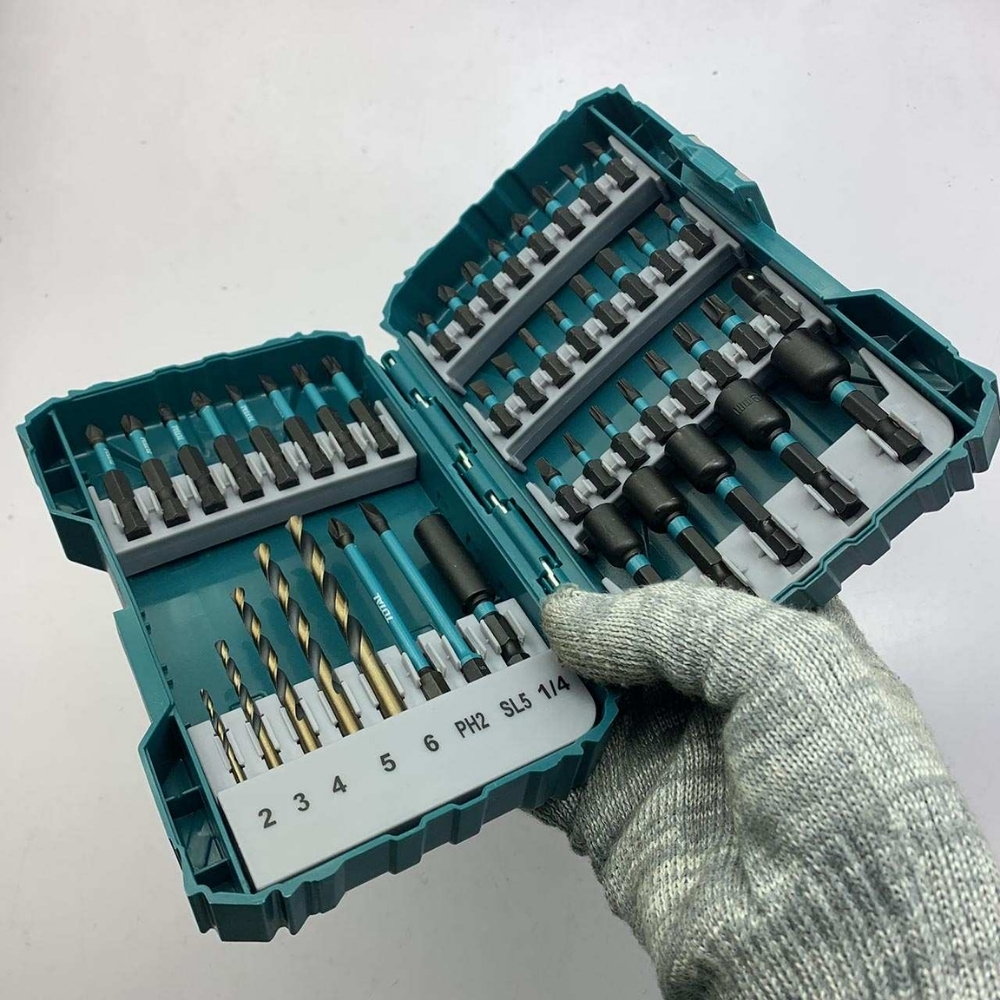 - 45 Chi Tiết Đa Dạng: Bao gồm 3 loại mũi vít (25mm, 50mm, 89mm), mũi khoan HSS và đai ốc từ tính.