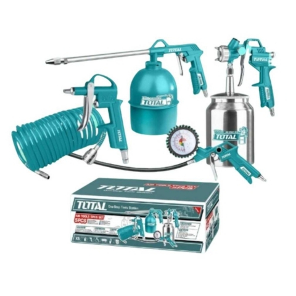 Bộ 5 công cụ dùng khí Total TATK053-3 là bộ dụng cụ đa năng toàn diện, được thiết kế để sử dụng cùng máy nén khí, đáp ứng nhiều nhu cầu khác nhau từ phun sơn, thổi bụi, đến bơm lốp và tra nhớt. Bộ sản phẩm này cung cấp 5 công cụ thiết yếu, giúp tối ưu hóa hiệu quả làm việc trong các xưởng sửa chữa, gara ô tô hoặc các dự án DIY yêu cầu khí nén. Tính đa dụng giúp tiết kiệm chi phí và không gian lưu trữ.