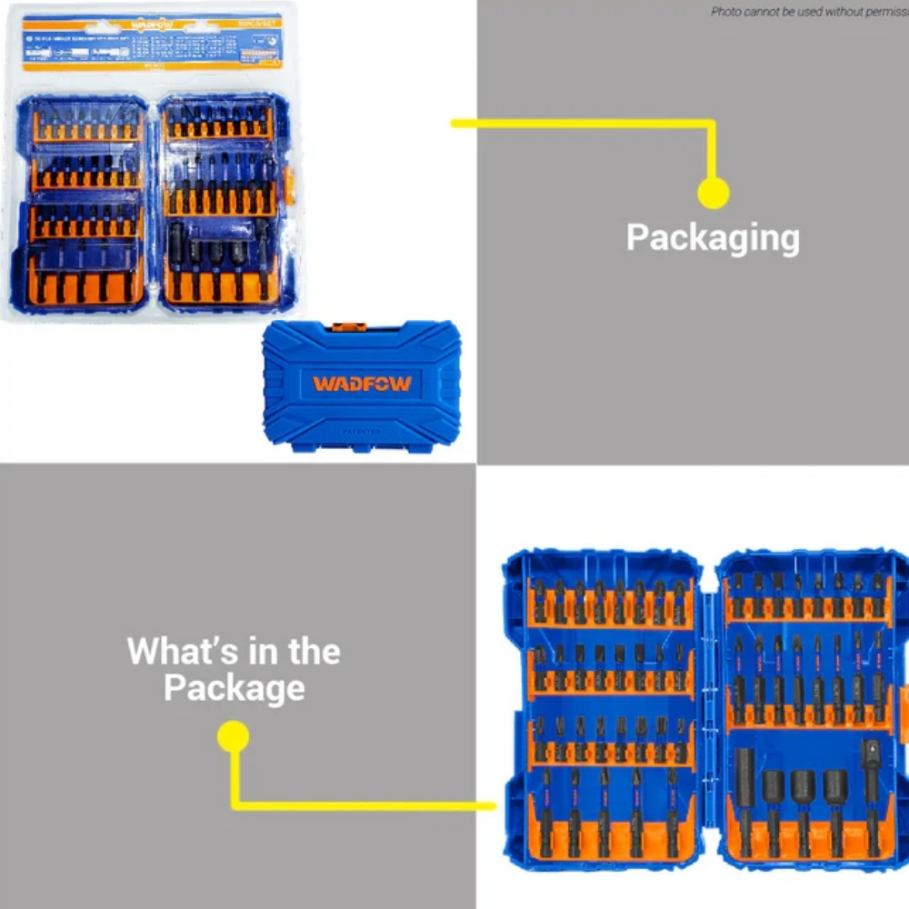 Bộ 50 chi tiết Wadfow WSV2005 bao gồm 32 mũi 25mm và 13 mũi 50mm, cùng với đai ốc từ tính, giá đỡ bit và bộ chuyển đổi ổ cắm. Các loại vít đa dạng từ PH, PZ, SL, T, H, SQ đều được bao gồm. Sự phong phú này đảm bảo khả năng xử lý bất kỳ loại vít nào trên công trường. Sản phẩm được đóng gói bằng Hộp Đôi, rất tiện lợi cho việc sắp xếp và mang theo.