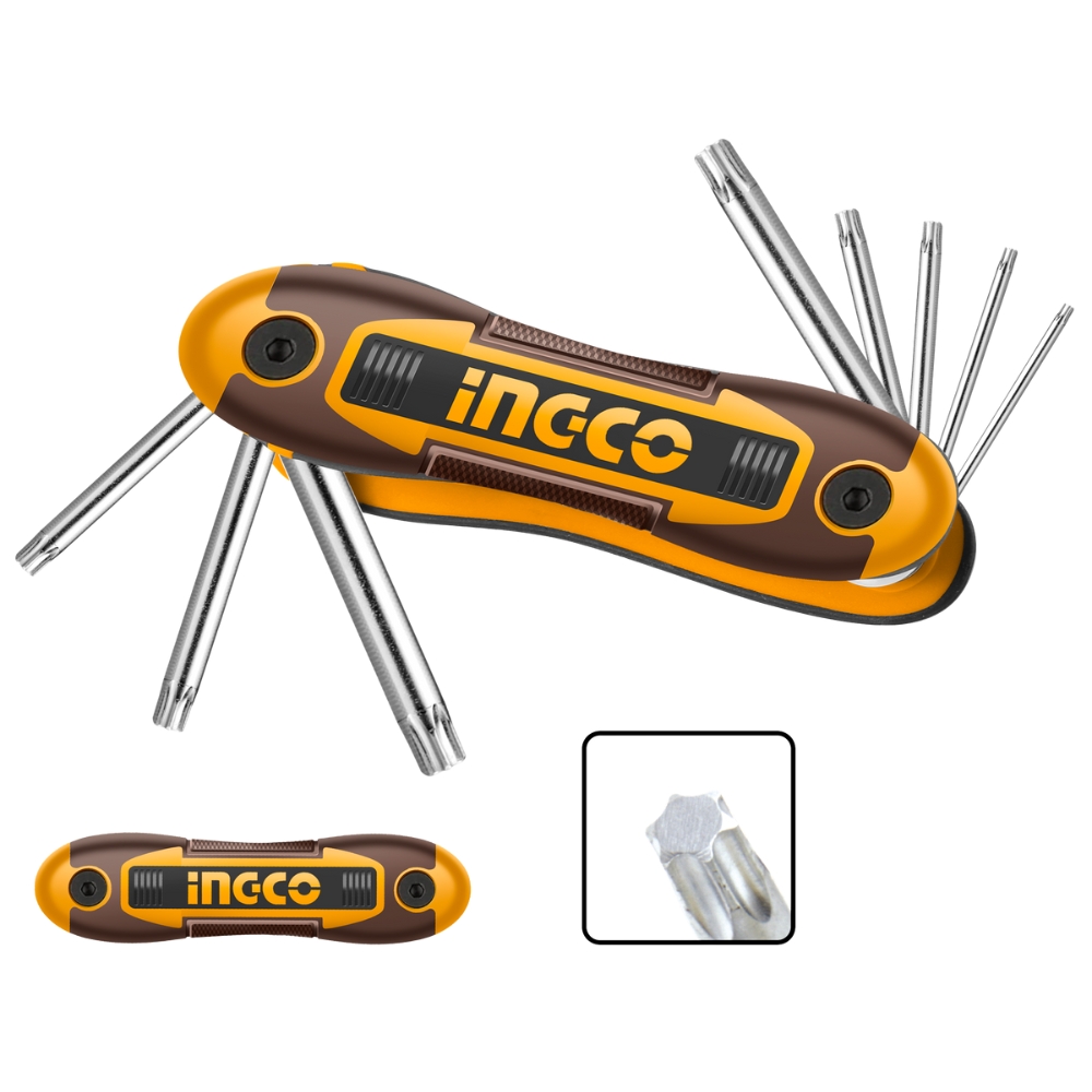 Bộ chìa lục giác xếp đầu bông Ingco HHK14083 là bộ dụng cụ nhỏ gọn, tiện lợi được thiết kế đặc biệt cho việc mang theo và sử dụng nhanh chóng với các ốc vít đầu hình sao (Torx). Với kiểu dáng xếp thông minh, bộ chìa lục giác này giúp người dùng dễ dàng bỏ túi và mang theo bất cứ đâu, đồng thời giữ các chìa lục giác gọn gàng, không bị thất lạc. Thiết kế đầu bông hình sao (Torx) đặc biệt cung cấp diện tích tiếp xúc lớn hơn và phân phối lực đồng đều, giúp truyền mô-men xoắn hiệu quả và giảm thiểu nguy cơ trượt hoặc làm hỏng đầu ốc vít.