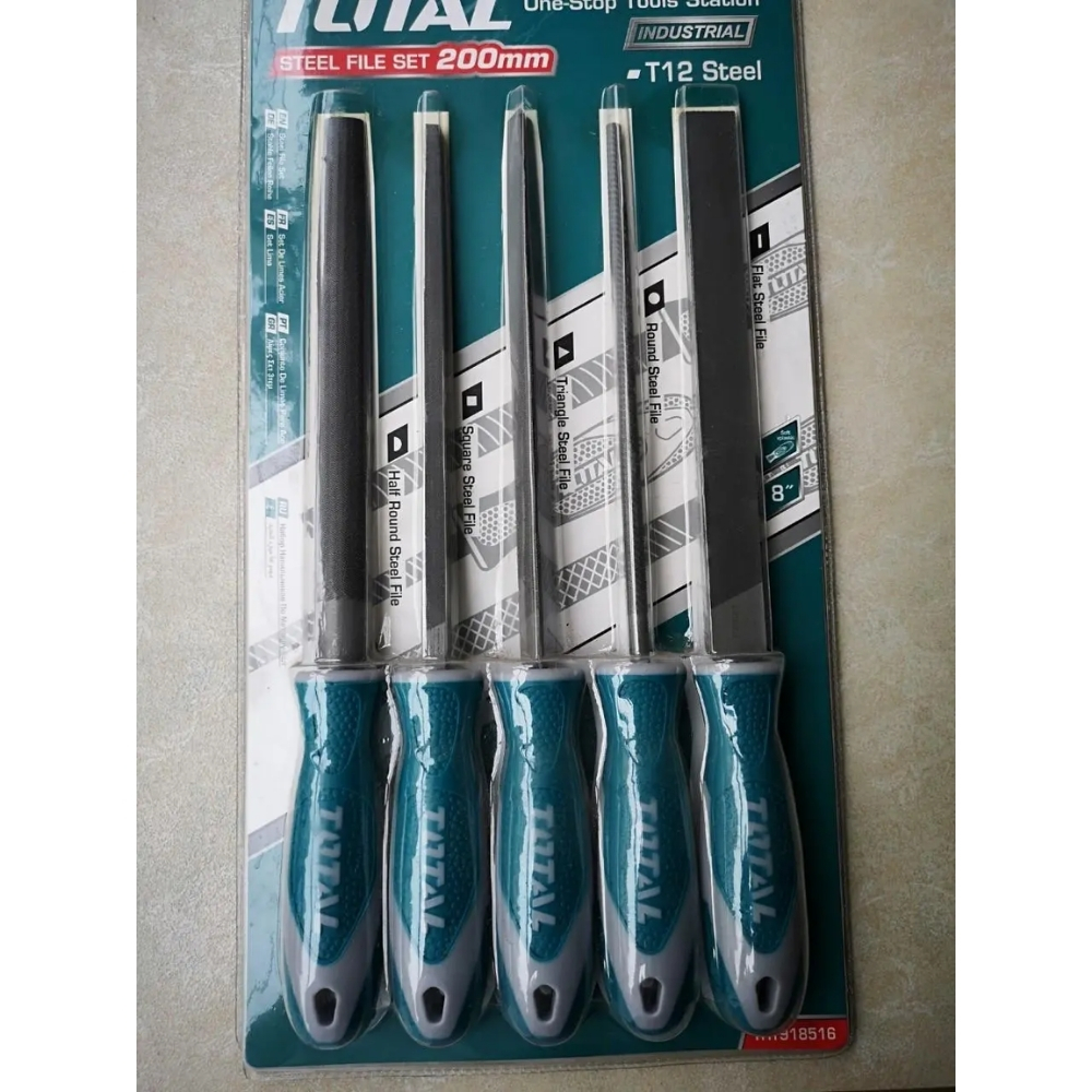 Bộ 5 giũa sắt Total THT918516 là bộ dụng cụ lý tưởng cho các công việc mài, làm mịn và định hình vật liệu sắt, thép, và kim loại khác. Bộ này cung cấp sự đa dạng về hình dạng giũa, cho phép người dùng thực hiện các thao tác khác nhau trên các bề mặt phức tạp, từ mài phẳng đến mài rãnh và lỗ. Các giũa có chiều dài 200mm, là kích thước tiêu chuẩn cho công việc chế tác và cơ khí.