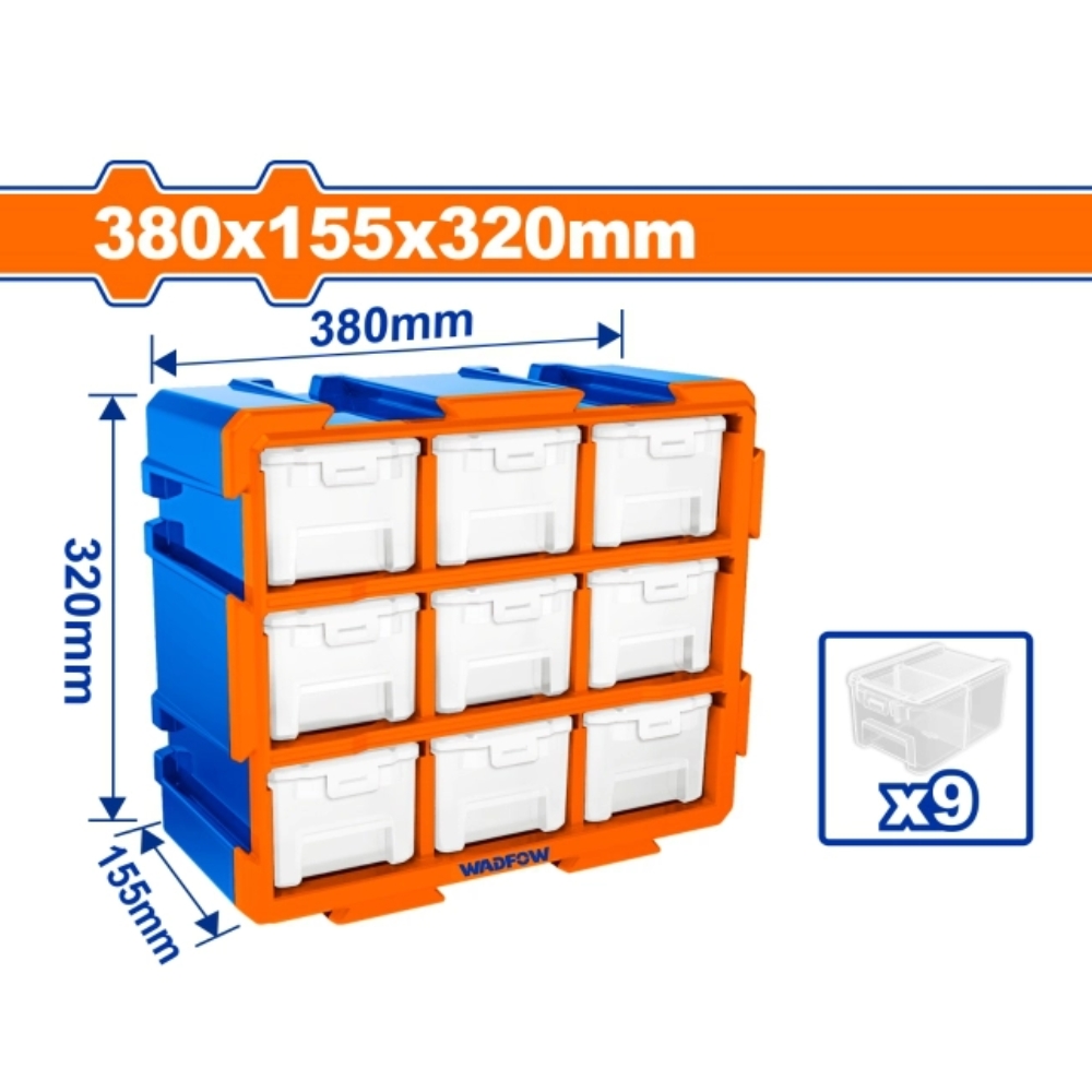 Bộ tủ gồm 9 khay nhựa (dạng kín) 380x155x320mm Wadfow WTB8331