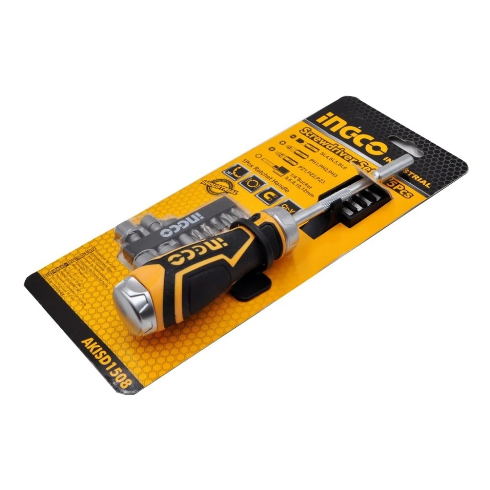 Chất liệu thép CR-V xuyên suốt trong 15 chi tiết của Ingco AKISD1508 đảm bảo độ bền vượt trội dưới cường độ làm việc cao. Tay cầm được thiết kế to bản, bọc nhựa mềm giúp người dùng gia tăng lực vặn mà không gây đau tay. Các đầu socket 1/4 inch đi kèm giúp biến chiếc tua vít thành một chiếc cờ lê mini tiện lợi, cho phép bạn tháo mở các loại đai ốc lục giác một cách nhẹ nhàng và chuyên nghiệp.