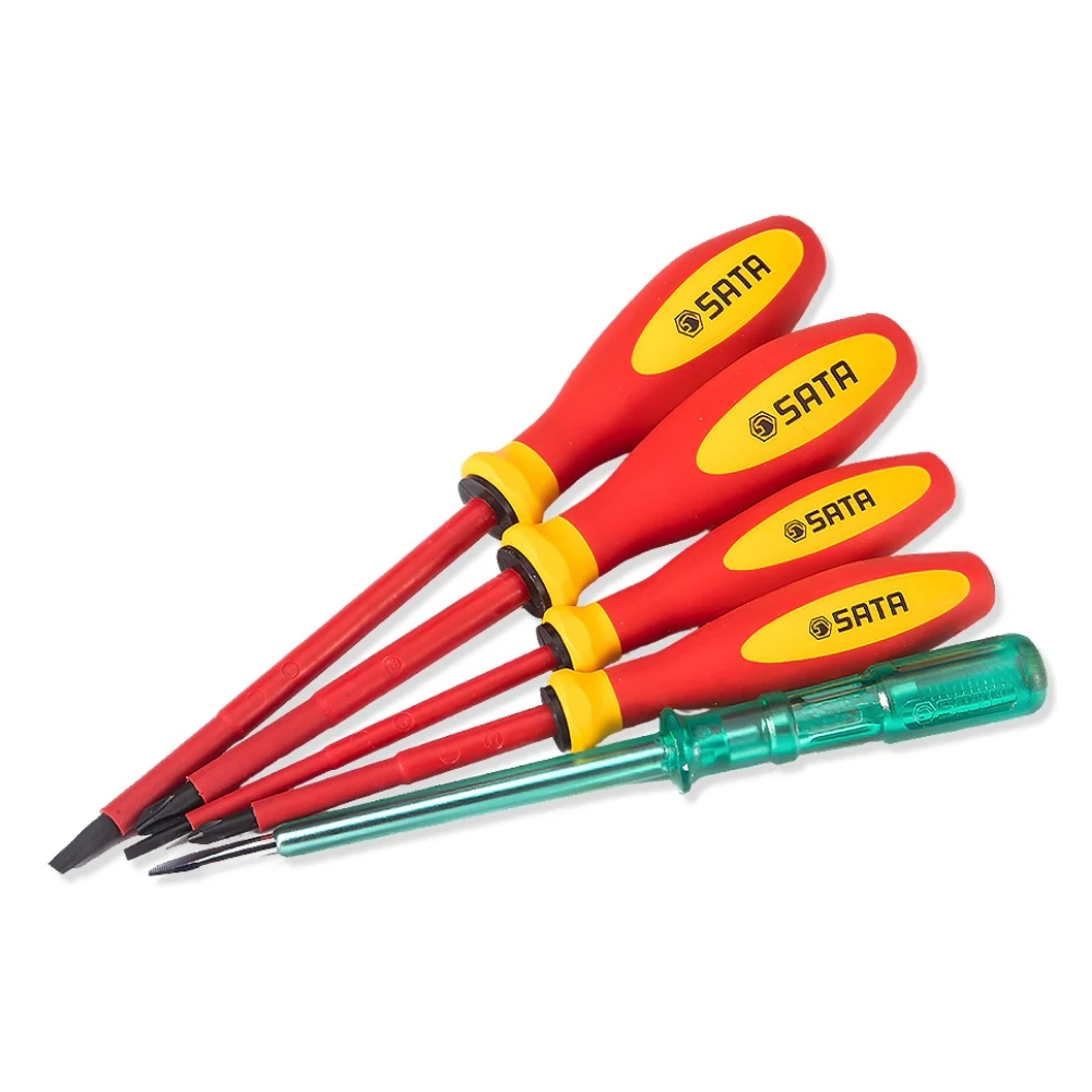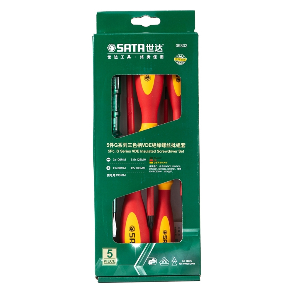 Bộ tua vít cách điện 1000V 5 chi tiết Sata 09302. Bao gồm: