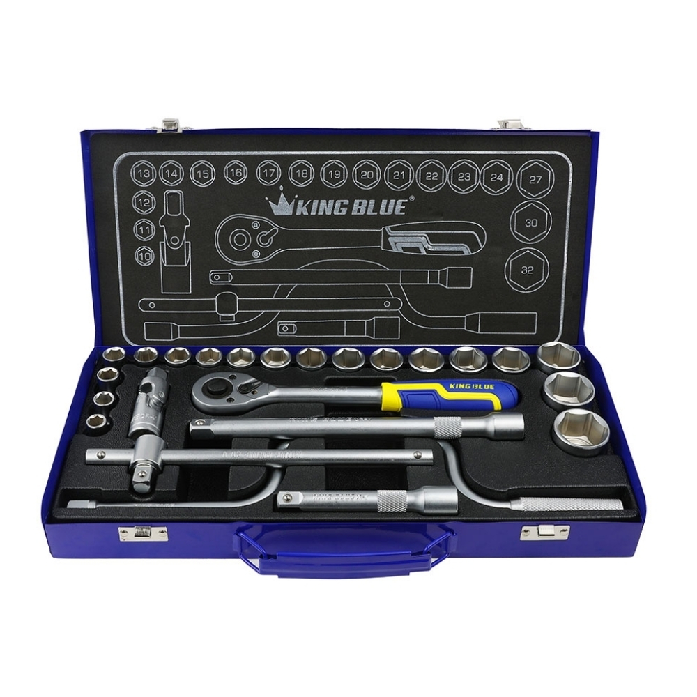 King Blue KLG24 là bộ dụng cụ sửa chữa cơ khí toàn diện nhất trong phân khúc đầu khẩu 1/2 inch, được thiết kế để xử lý các hệ thống máy móc phức tạp và bu lông kích cỡ lớn. Điểm vượt trội của KLG24 nằm ở sự kết hợp giữa các cần siết lực mạnh mẽ và khớp nối chuyển hướng linh hoạt, giúp kỹ thuật viên tháo lắp dễ dàng tại mọi vị trí, kể cả những góc khuất hoặc không gian cực kỳ hạn chế.