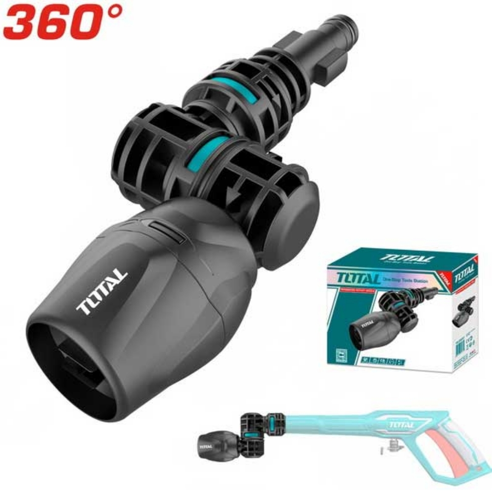 Đầu phun xoay 360 độ Total TGTRN360 là một phụ kiện chuyên dụng được thiết kế để tăng cường hiệu quả làm sạch của máy xịt rửa cao áp. Với khả năng xoay 360 độ, đầu phun này tạo ra luồng nước xoáy mạnh mẽ, giúp phá vỡ và loại bỏ các vết bẩn cứng đầu, rong rêu, hoặc lớp sơn cũ trên bề mặt một cách nhanh chóng. Phụ kiện này là lựa chọn tuyệt vời để làm sạch các bề mặt lớn hoặc các khu vực khó tiếp cận, nơi cần lực tác động tập trung và hiệu quả cao.