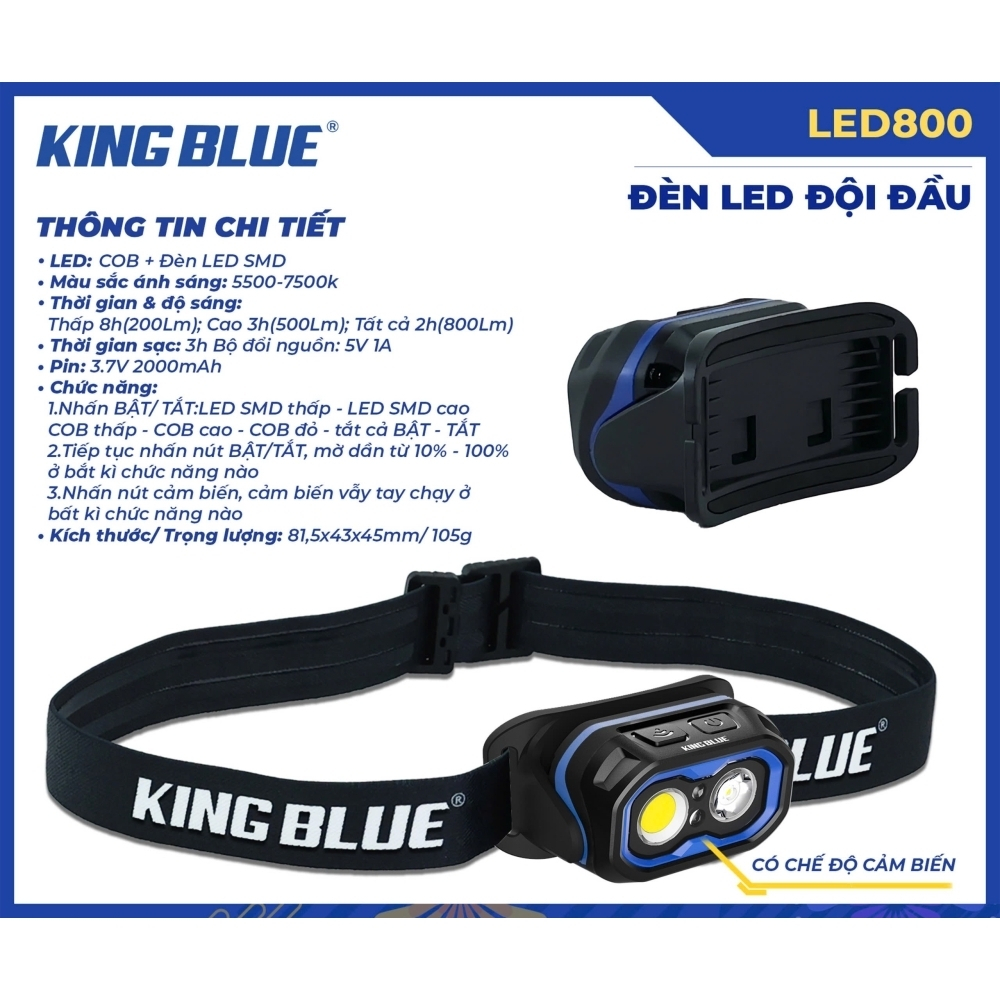 Đèn pin đội đầu King Blue LED800 là dòng đèn cao cấp với cường độ sáng mạnh mẽ và nhiều tính năng tùy biến sâu. Sử dụng viên pin dung lượng lớn 2000mAh, đèn đảm bảo thời gian chiếu sáng ổn định cho các ca làm việc kéo dài. Thiết kế tập trung vào sự tiện lợi với hệ thống dây đeo chắc chắn, giúp kỹ thuật viên rảnh tay hoàn toàn để tập trung vào các chi tiết kỹ thuật phức tạp trong xưởng dịch vụ hoặc điều kiện thiếu sáng.