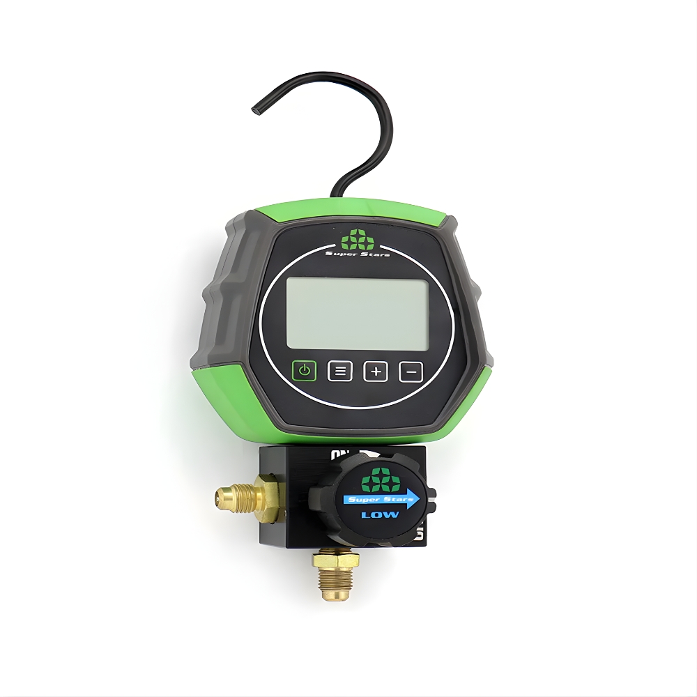 Đồng hồ đơn điện tử áp thấp Super Star ST-B168DL là thiết bị chuyên dụng để đo áp suất đầu hút và kiểm tra tình trạng thiếu gas của hệ thống lạnh. Sản phẩm mang lại độ chính xác vượt trội so với đồng hồ kim nhờ cảm biến điện tử nhạy bén và màn hình hiển thị số. Giống như các dòng đồng hồ điện tử khác của Super Star, nó cũng hỗ trợ hơn 90 loại gas lạnh hiện đại nhất. Với vỏ bọc chống sốc chắc chắn, thiết bị này luôn sẵn sàng cho những điều kiện làm việc khắc nghiệt nhất tại công trường.