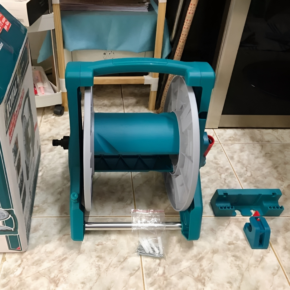 Sản phẩm này được thiết kế theo từng phần và yêu cầu người dùng tự lắp ráp. Tay cầm kéo dài và mở rộng, tích hợp thiết kế chống kẹp, tăng cường sự an toàn và thoải mái khi sử dụng. Giá đỡ ống được làm bằng nhôm dày, có thể treo trên tường để giải phóng không gian sàn. Thiết kế này không chỉ giúp ống nước được sắp xếp gọn gàng mà còn kéo dài tuổi thọ của ống, tránh hư hại do bị kéo lê hoặc phơi nắng.