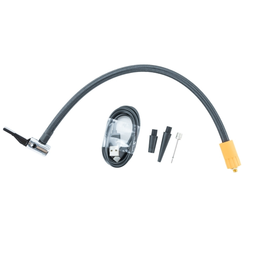- Phụ kiện đi kèm: Hộp đựng bằng vải dù, dây kích bình, vòi bơm lốp, đầu bơm đa năng, dây sạc, hướng dẫn sử dụng.