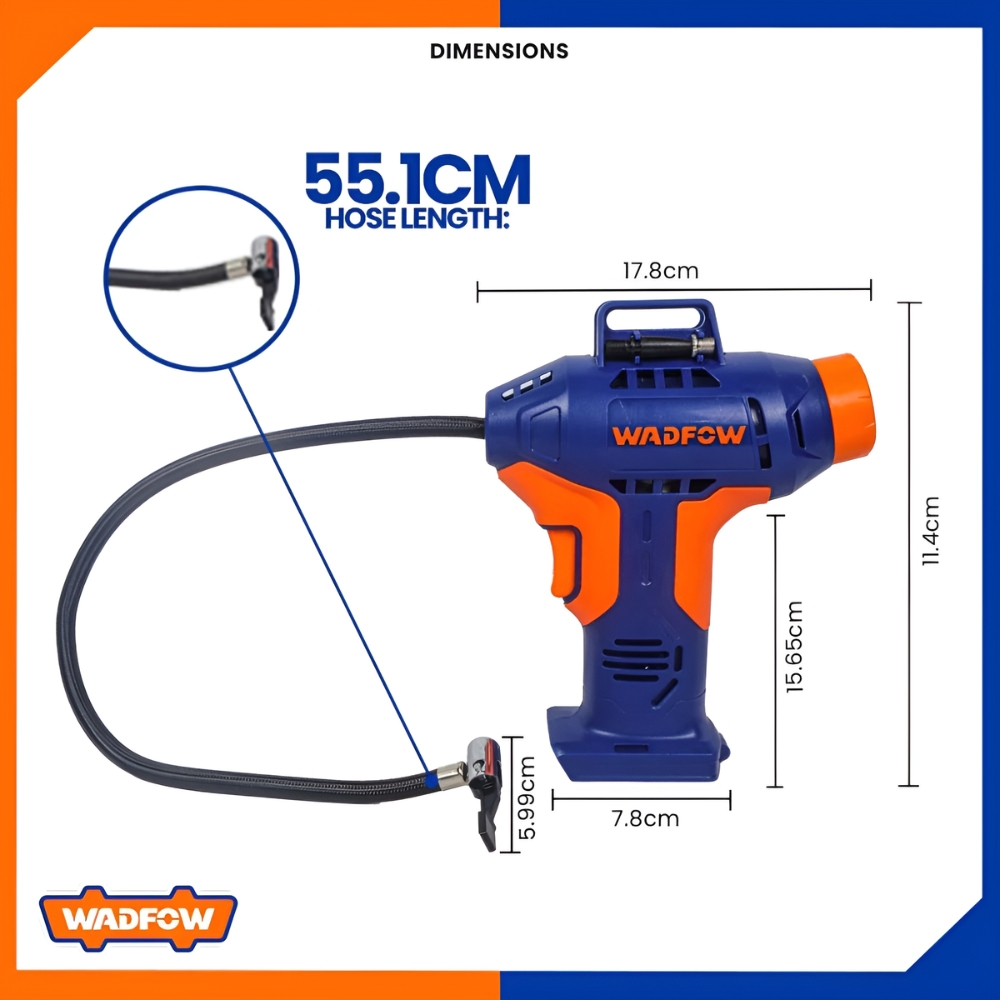 Máy kiểm tra hơi lốp xe ô tô dùng pin 20V Wadfow WLN2520 sở hữu những ưu điểm nổi bật giúp nâng cao trải nghiệm sử dụng và hiệu quả công việc: