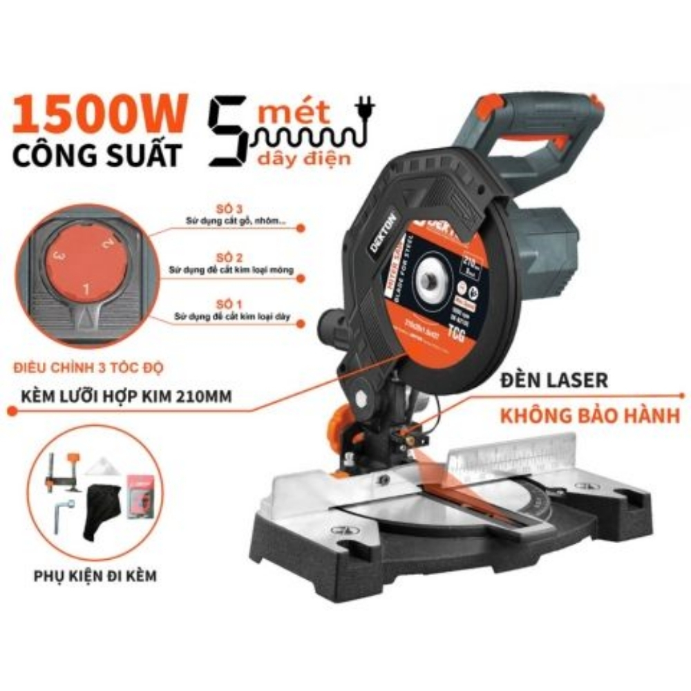 Máy cắt đa năng 210mm – 1500W Dekton DK-CN210PLUS là máy cắt linh hoạt với nhiều tính năng. Các thông số kỹ thuật chính bao gồm: