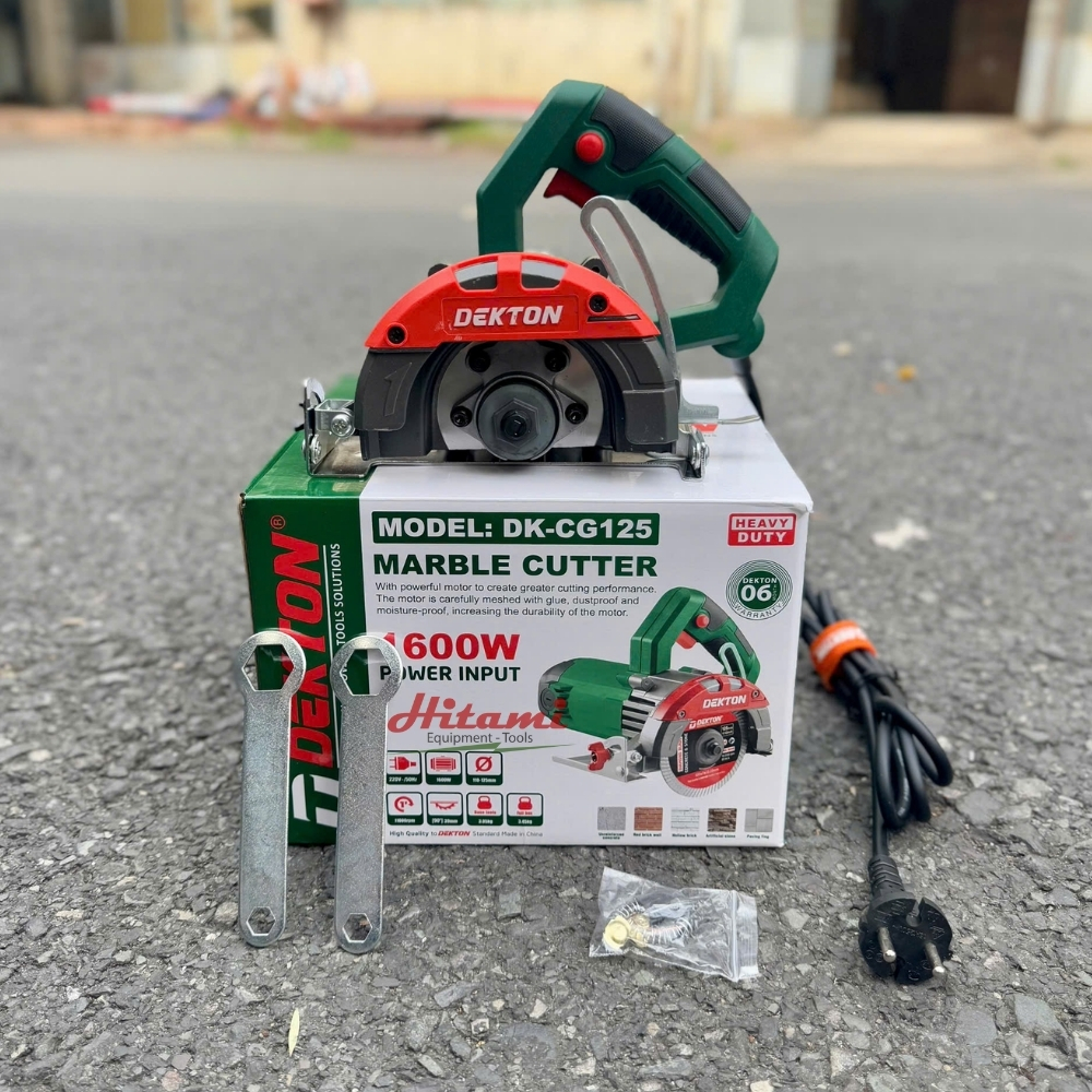 - Thiết kế tiện lợi: Với tay cầm vừa vặn, trọng lượng nhẹ chỉ 3kg (kèm hộp đựng 3.5kg), máy cắt gạch cầm tay Dekton DK-CG110A mang lại sự thoải mái khi thao tác trong thời gian dài.