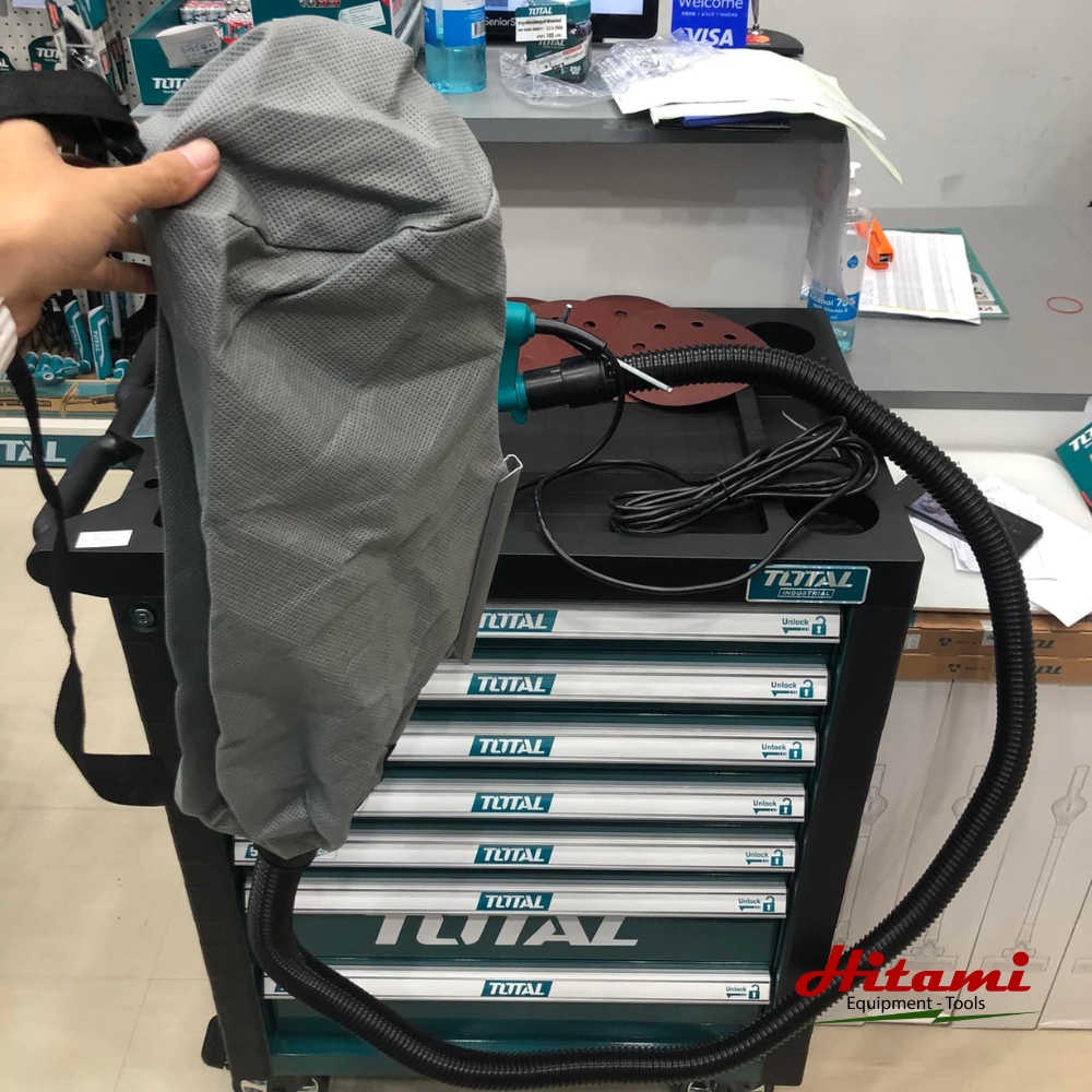 Được thiết kế với tính thực dụng cao, máy chà bột mịn tường Total TDWS7501 sở hữu hệ thống hút bụi hiệu quả với đường kính ống bụi 38mm, kết hợp cùng ống ruột gà và túi đựng bụi đi kèm, giúp giữ cho không gian làm việc sạch sẽ và bảo vệ sức khỏe người sử dụng. Đặc biệt, máy được trang bị đèn LED công suất 10W, cung cấp ánh sáng tối ưu khi làm việc trong điều kiện thiếu sáng, giúp phát hiện những khuyết điểm nhỏ trên bề mặt tường. Bộ sản phẩm đi kèm 5 miếng chà nhám đa dạng, cho phép người dùng bắt đầu công việc ngay mà không cần mua thêm phụ kiện. Thiết kế cân đối với tay cầm tiện dụng giúp người dùng dễ dàng thao tác khi làm việc trên tường và trần nhà.