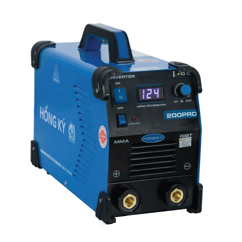 Máy hàn que chống giật 200A Hồng Ký MMA200PRO là một thiết bị hàn điện tử tiên tiến, được thiết kế đặc biệt để đáp ứng các yêu cầu khắt khe của thợ chuyên nghiệp. Sản phẩm này không chỉ kế thừa các ưu điểm nổi bật của dòng máy hàn Hồng Ký mà còn được tích hợp thêm nhiều công nghệ hiện đại, mang lại hiệu suất làm việc vượt trội và độ an toàn tối đa. Sự kết hợp giữa công suất mạnh mẽ, khả năng hàn liên tục bền bỉ và tính năng chống giật ưu việt đã làm nên tên tuổi của MMA200PRO trong ngành cơ khí và xây dựng.
