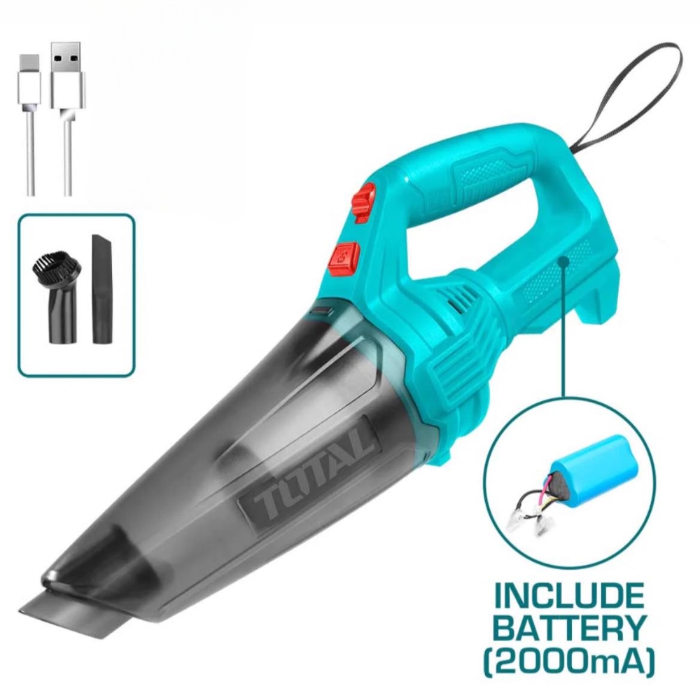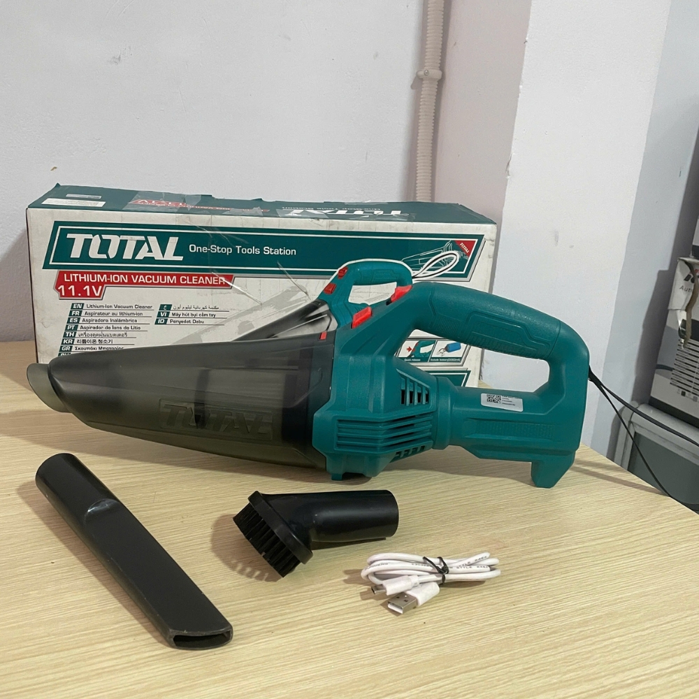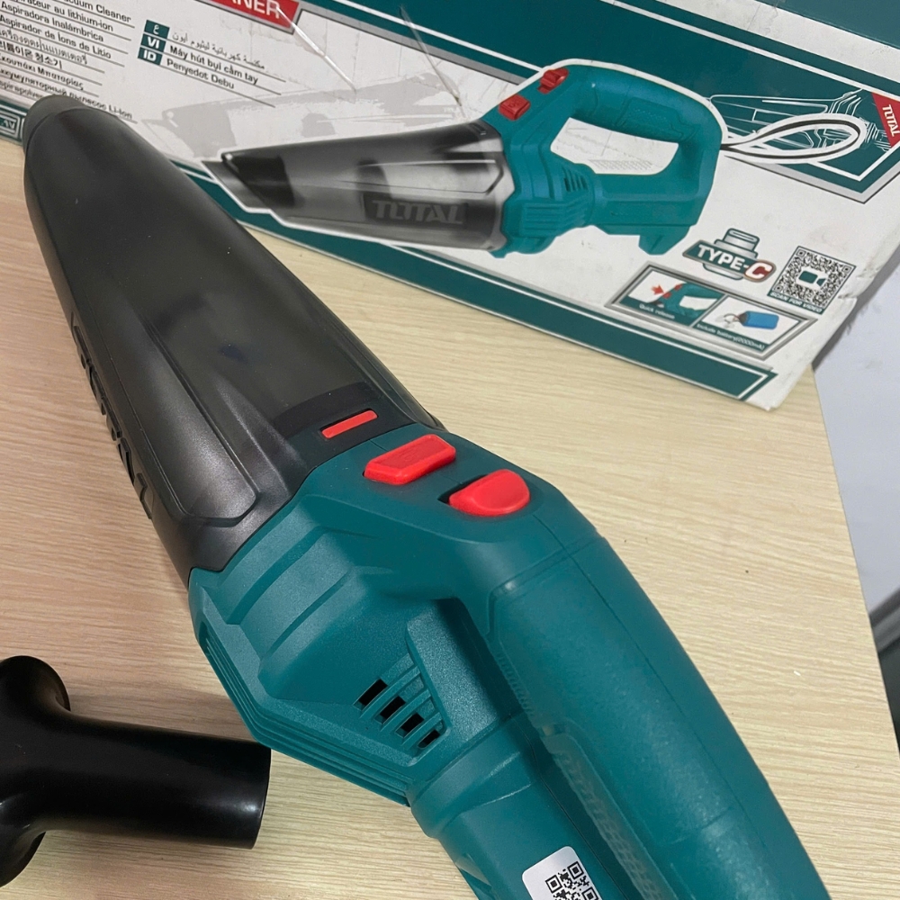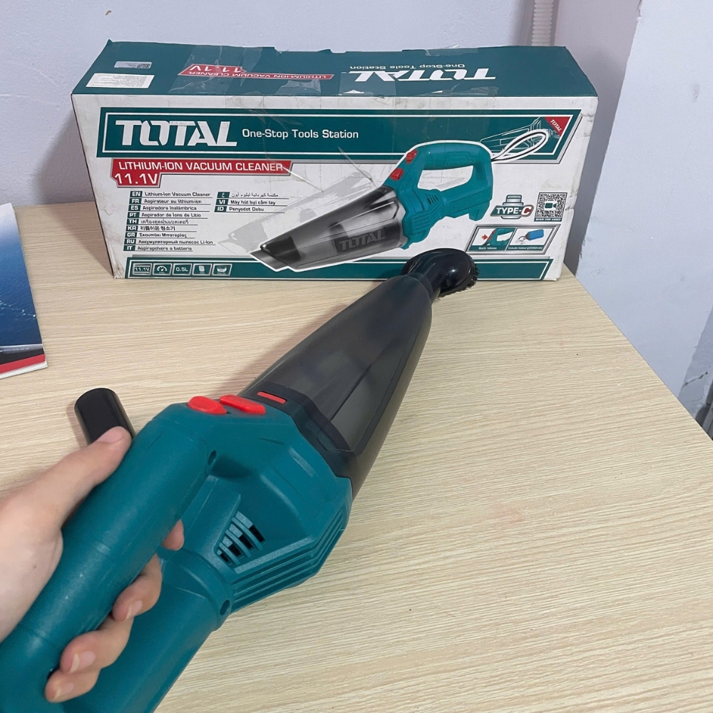 Một trong những điểm nổi bật của máy hút bụi Total TVLI2026 là hệ thống sạc hiện đại thông qua cổng USB Type-C 5V 2A, cho phép người dùng dễ dàng sạc máy từ nhiều nguồn khác nhau như sạc điện thoại, laptop, hay power bank khi đi du lịch. Với áp suất chân không trên 7kpa, máy đảm bảo lực hút đủ mạnh để loại bỏ hiệu quả bụi bẩn trên nhiều bề mặt khác nhau. Bộ phụ kiện đi kèm bao gồm vòi hút kẽ hở giúp tiếp cận các góc nhỏ, khe hẹp và chổi quét bụi lông mềm chuyên dụng cho các bề mặt dễ xước như đồ điện tử, nội thất cao cấp.