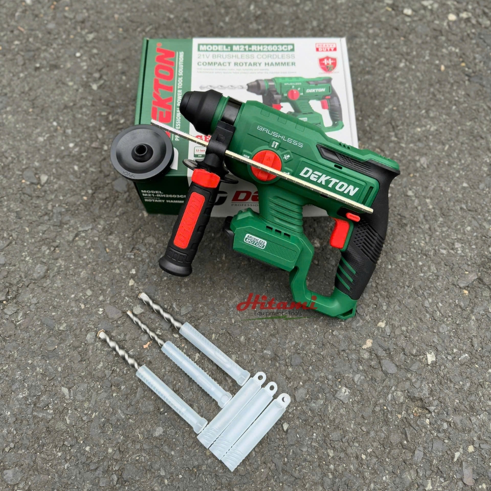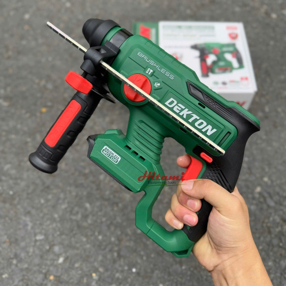 Máy khoan bê tông 3 chức năng pin Dekton M21-RH2603C đánh dấu bước tiến công nghệ với việc tích hợp Motor BRUSHLESS (Không chổi than), mang lại hiệu suất làm việc vượt trội, tuổi thọ động cơ cao hơn và sử dụng pin hiệu quả hơn so với các dòng máy chổi than truyền thống. Sản phẩm này cung cấp lực đập 3,2 J mạnh mẽ cùng tốc độ không tải 1050 RPM, đảm bảo khả năng khoan và đục bê tông nhanh chóng, chính xác. M21-RH2603C là sự lựa chọn hoàn hảo cho những người thợ đòi hỏi công cụ bền bỉ, mạnh mẽ và tiết kiệm năng lượng.