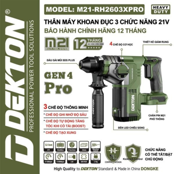 Máy khoan đục Dẹkton M21-RH2603XPRO là dòng máy công nghệ cao, sở hữu các tính năng cốt lõi sau: