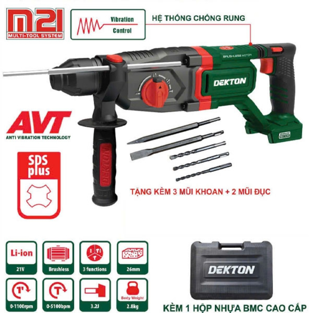Máy khoan bê tông pin 3 chức năng Dekton M21-RH2603B sở hữu những thông số và tính năng cốt lõi sau:
