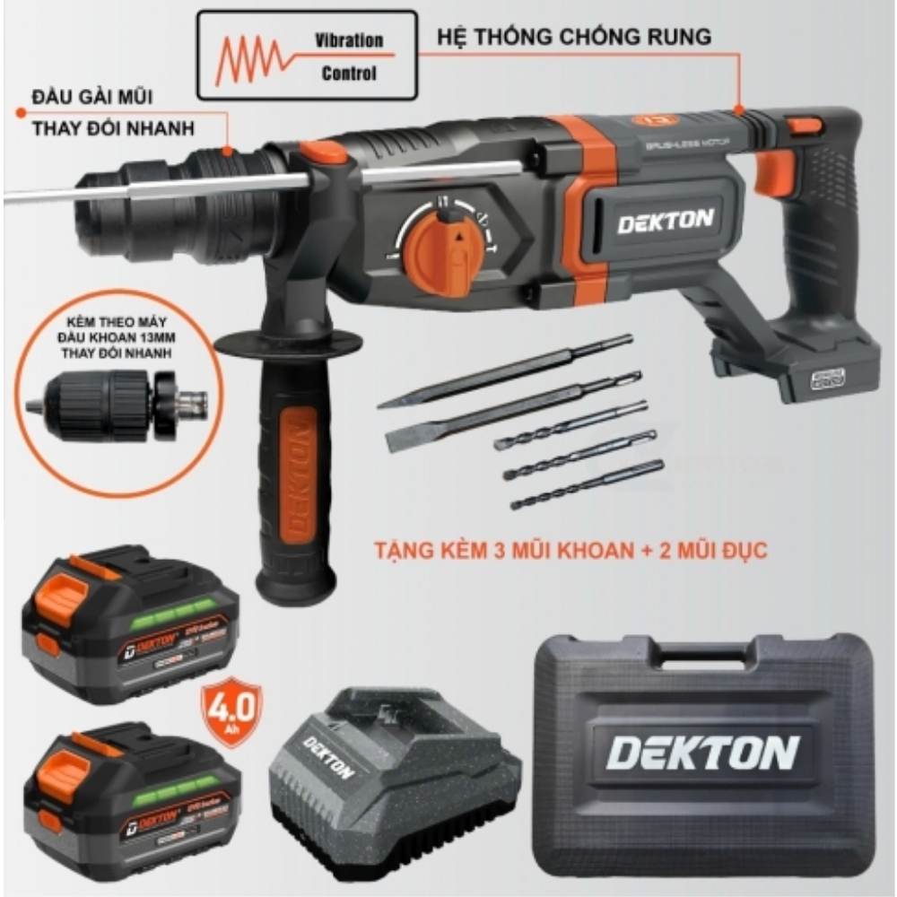 Máy khoan bê tông pin 3 chức năng Dekton M21-RH2603BX sở hữu những thông số và tính năng cốt lõi sau: