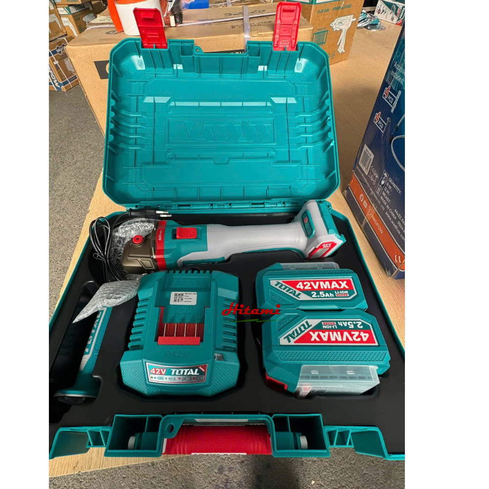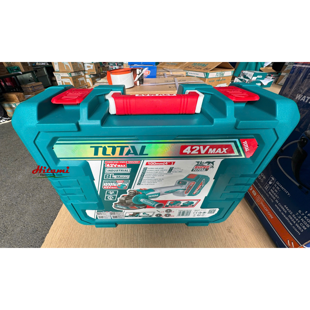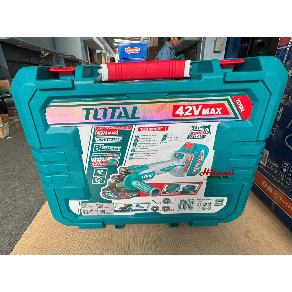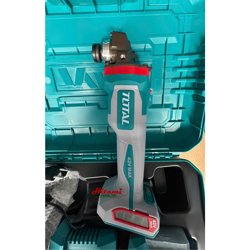 Máy mài góc dùng pin 42V Total TAGLI4128102 là một công cụ mạnh mẽ và linh hoạt, được thiết kế đặc biệt cho các công việc cắt và mài kim loại chuyên nghiệp. Với công nghệ motor không chổi than hiện đại và hệ thống pin 42V, sản phẩm mang lại hiệu suất vượt trội cùng độ bền cao. Máy được trang bị đầy đủ phụ kiện kèm theo, bao gồm bộ 25 đĩa cắt kim loại, đĩa mài các loại và pin sạc, giúp người dùng có thể sử dụng ngay sau khi mua.