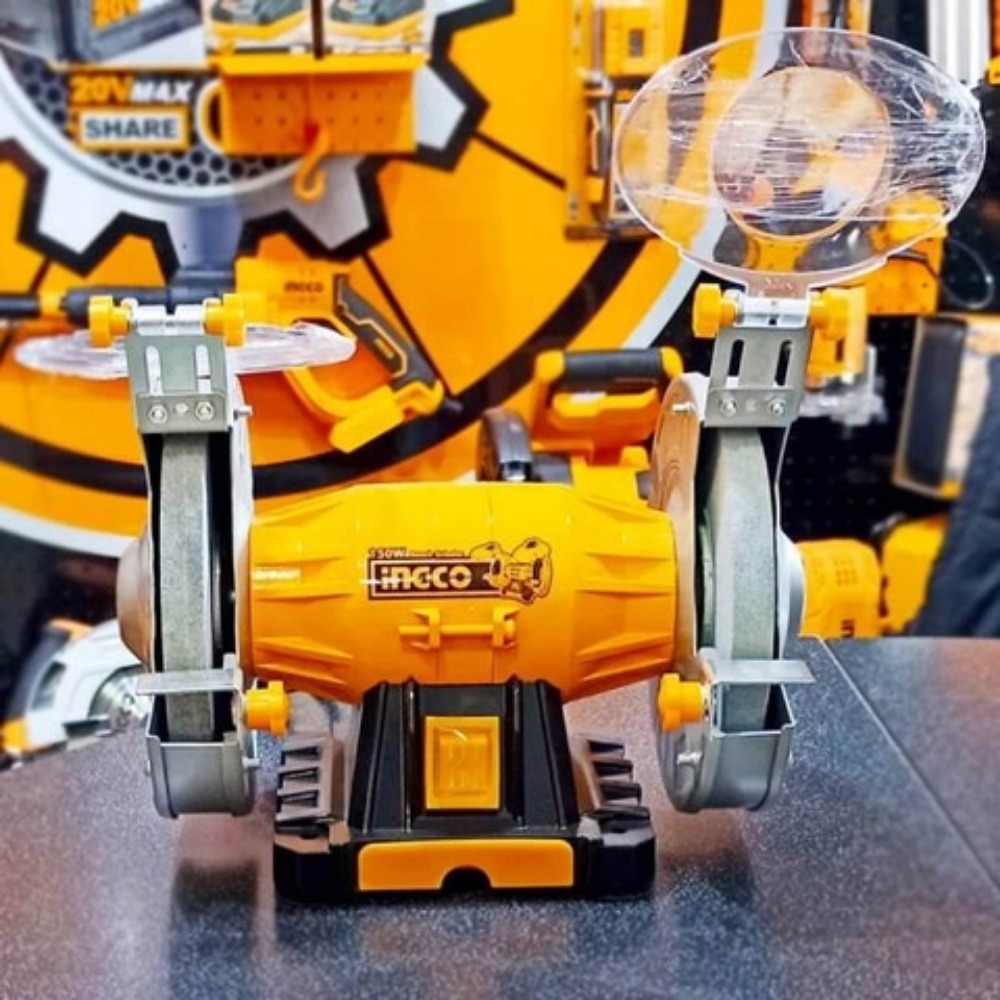 Máy mài hai đầu Ingco BG61502 là thiết bị cơ bản không thể thiếu trong các xưởng cơ khí nhỏ hoặc các hộ gia đình dùng để mài sắc công cụ và vật liệu kim loại. Máy vận hành bằng nguồn điện 220-240V thông dụng với công suất 150W, phù hợp cho các công việc mài nhẹ nhàng và yêu cầu độ tỉ mỉ cao. Thiết kế hai đầu đá mài cho phép lắp đặt đồng thời các loại đá có độ nhám khác nhau để linh hoạt thay đổi giữa công đoạn mài thô và mài tinh.