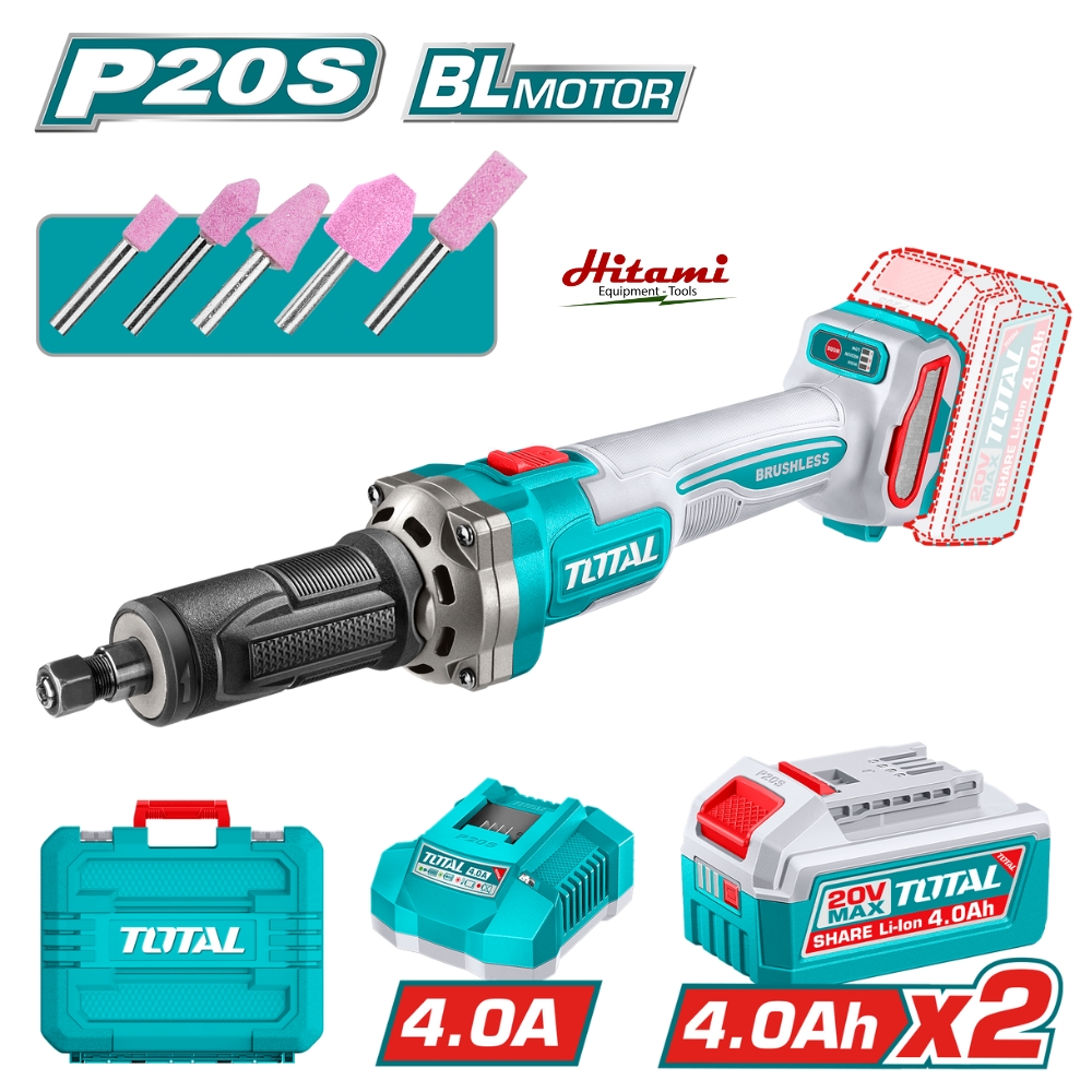 - Pin 4.0Ah dung lượng lớn: Đi kèm 2 viên pin 20V giúp tăng thời gian sử dụng liên tục, phù hợp cho các công trình xa nguồn điện.