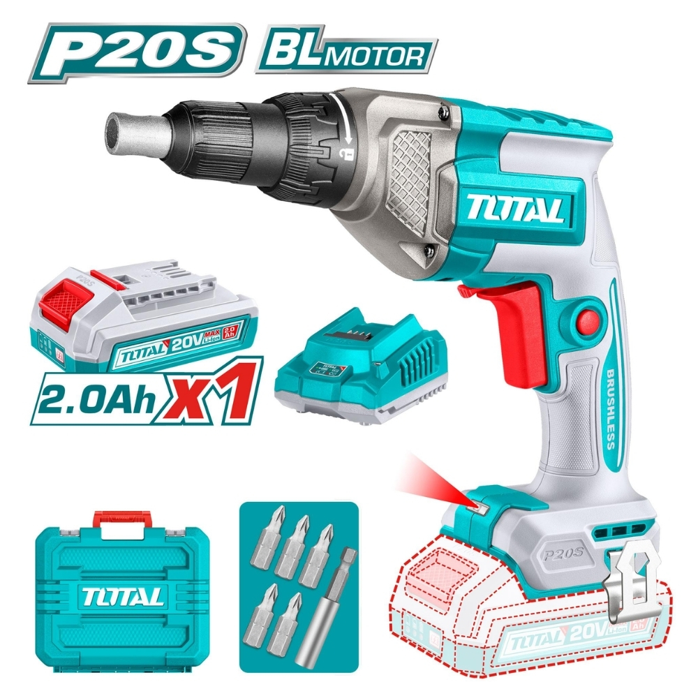 Máy siết vít tường và thạch cao dùng pin 20V Total TDSLI204281 là công cụ chuyên nghiệp được thiết kế đặc biệt nhằm tối ưu hóa các công việc lắp đặt và hoàn thiện nội thất. Sản phẩm này giải quyết hiệu quả nhu cầu siết vít nhanh, chuẩn xác trên các vật liệu mềm như thạch cao hoặc vách ngăn, nơi tốc độ và sự đồng đều của mũi vít là yếu tố then chốt. Với nguồn điện áp 20V mạnh mẽ từ pin Lithium-Ion, chiếc máy này đảm bảo hiệu suất hoạt động liên tục và ổn định, giúp các thợ thi công hoàn thành công việc nhanh chóng và đạt chất lượng cao.