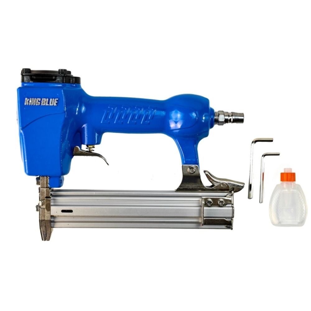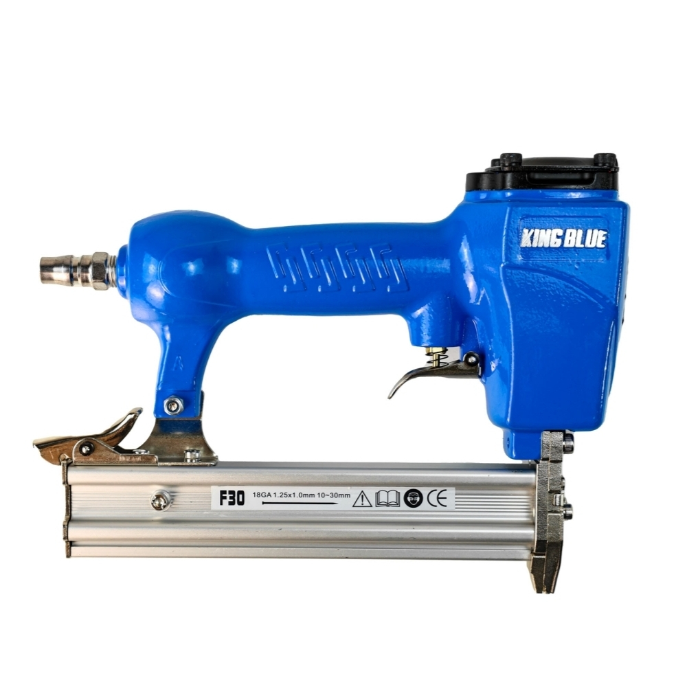 Súng bắn đinh King Blue KBO-FG30 là công cụ khí nén chuyên nghiệp, được thiết kế tối ưu cho cường độ làm việc liên tục trong các xưởng gỗ và kho vận. Với kích thước gọn gàng (255x55x168mm), máy cho phép người dùng thao tác linh hoạt ở nhiều góc độ khác nhau. Sản phẩm là giải pháp thay thế hoàn hảo cho việc đóng đinh thủ công, giúp tăng năng suất lao động và đảm bảo tính thẩm mỹ cho bề mặt sản phẩm.