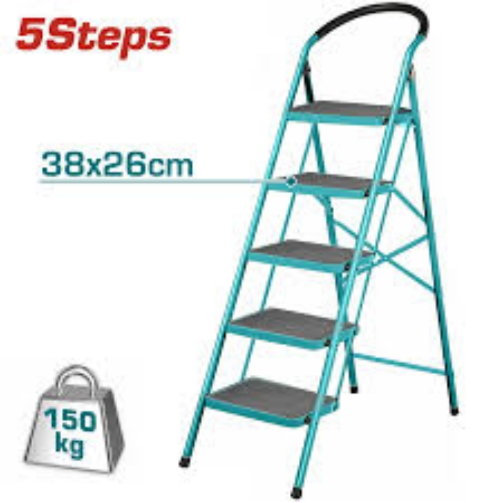 Thang xếp Total THLAD09051 là một chiếc thang cao, được thiết kế với năm bậc thang để đáp ứng các nhu cầu làm việc ở độ cao lớn hơn, như làm sạch trần nhà, cắt tỉa cây cảnh hoặc lắp đặt các thiết bị trên cao. Thang được chế tạo bằng vật liệu thép chất lượng cao, đảm bảo độ cứng vững tối đa và sự an toàn khi người dùng đứng ở độ cao đáng kể. Mặc dù cao, thang vẫn có thể được gấp gọn để cất giữ.