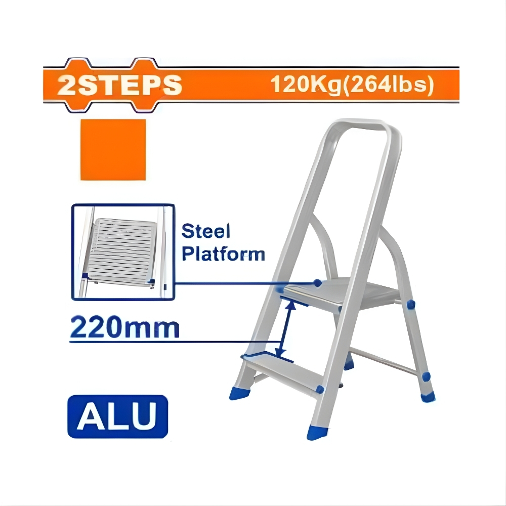 Sự kết hợp vật liệu nhôm và thép mang lại sự nhẹ nhàng (2.0kg) nhưng vẫn đảm bảo tải trọng tối đa 120kg (264lbs). Thang ghế gia đình 2 bậc Wadfow WLD3H02 có nền thép trên cùng và khoảng cách giữa bậc trên cùng và tay cầm là 500mm, tạo sự an toàn tối đa. Khoảng cách giữa hai bậc là 220mm, giúp bước lên thoải mái.