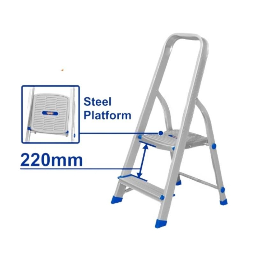 Thang nhôm thiết kế nhỏ gọn và tiện lợi cho các công việc trong tầm với thấp. Thang ghế gia đình 2 bậc Wadfow WLD3H02 là công cụ không thể thiếu trong nhà bếp hoặc văn phòng, nơi cần đứng vững để lấy đồ vật trên kệ cao hoặc tủ. Với chỉ 2 bậc, thang có chiều cao từ mặt đất đến bậc trên cùng là 340mm, phù hợp cho những nhu cầu cơ bản hàng ngày.