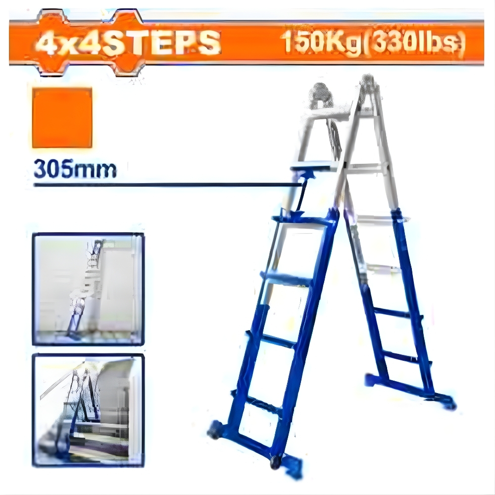 Mở rộng khả năng làm việc lên tầm cao hơn, Thang xếp đa năng 4×4 Wadfow WLD7H16 với tổng cộng 16 bậc (4×4) là lựa chọn cho các công trình lớn hơn. Thang có thể mở rộng thành thang chữ A cao đến 2140mm hoặc thang đứng tổng chiều dài 4460mm, đáp ứng mọi nhu cầu làm việc trên cao.