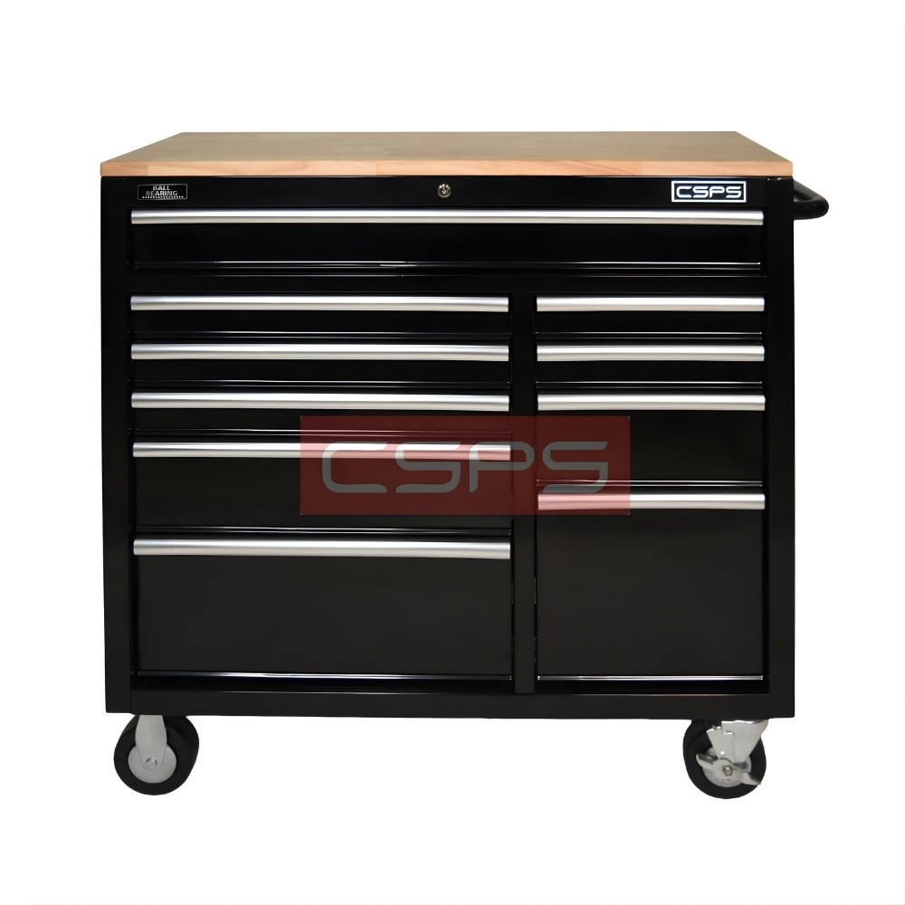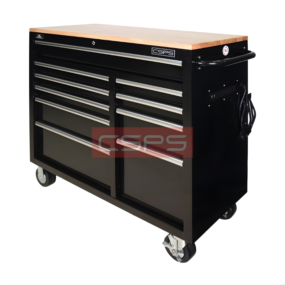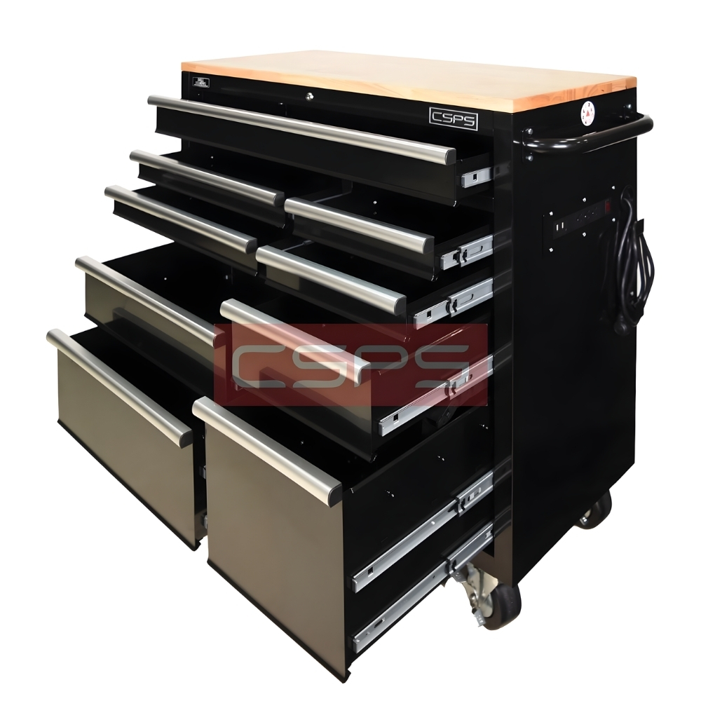 Ray trượt: Ray bi 3 tầng, đóng mở êm (soft-close) Tải trọng: 45 kg/ngăn nhỏ & 90 kg/ngăn lớn Có 1 ngăn chuyên dụng để sạc dụng cụ pin Chu kỳ đóng mở: 40.000 lần |