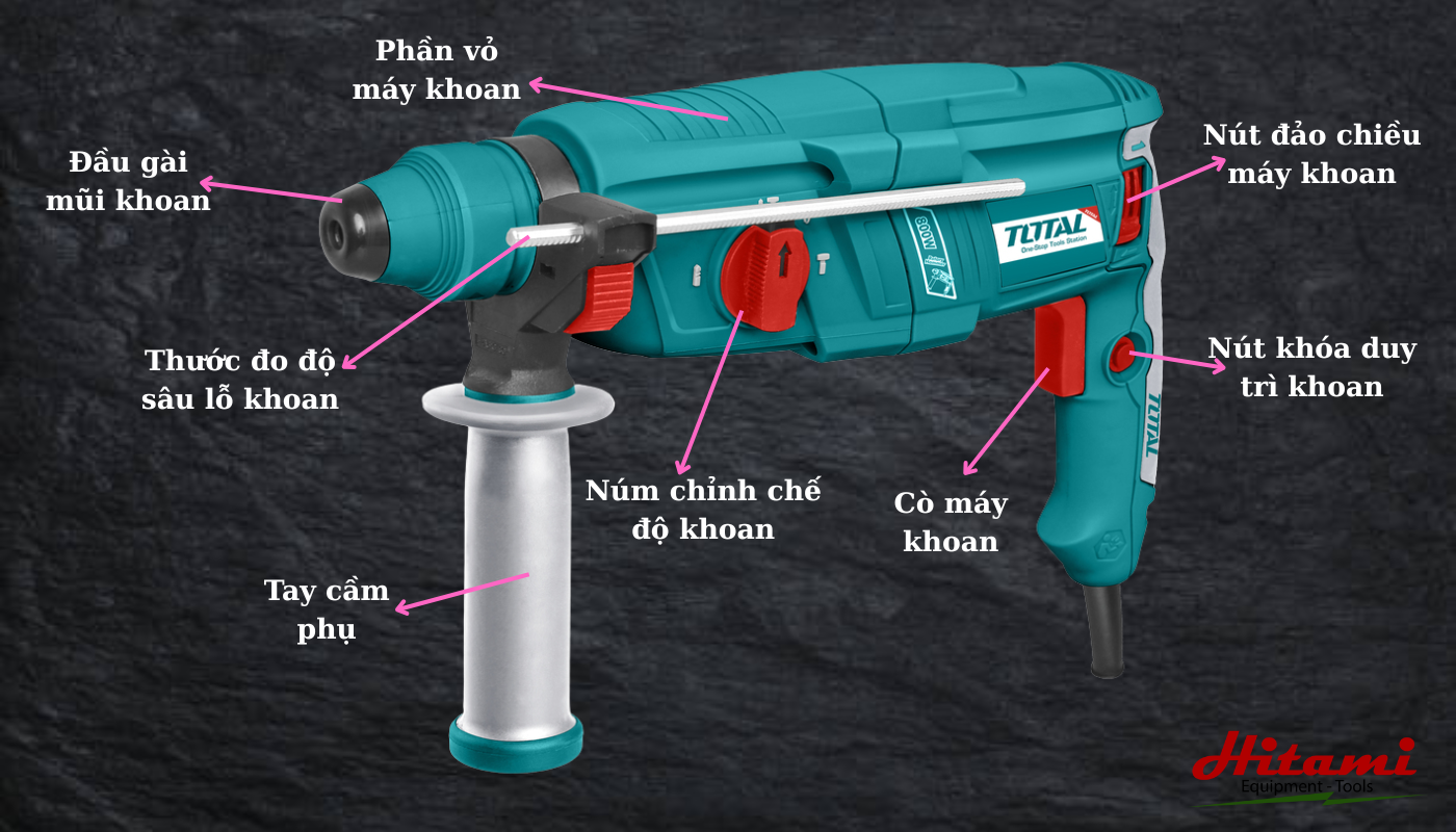 Máy khoan bê tông là một trong những thiết bị không thể thiếu trong các công trình xây dựng, sửa chữa và trang trí nhà cửa. Để sử dụng máy khoan an toàn và hiệu quả, cần hiểu rõ về cấu tạo và nguyên lý hoạt động của nó. Ở bài viết này Thiết bị dụng cụ kỹ thuật Hitami sẽ giúp bạn tìm hiểu chi tiết cấu tạo máy khoan bê tông, từ phần vỏ ngoài đến các chi tiết bên trong, cũng như phụ kiện đi kèm. Đồng thời chúng ta cũng sẽ điểm qua một số mẫu máy khoan bê tông bán chạy nhất hiện nay và địa chỉ mua uy tín chất lượng.